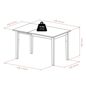 Take home a blend of grace and simplicity with the Winsome Wood Perrone Drop Leaf Dining Table, an indispensable addition to any home. Offering exceptional versatility and making this an excellent space saving choice for a studio apartment or small spaces where a multipurpose table is ideal. Needing more surface space, the apron and legs slide out to fully support the drop leaf top, providing the utmost in stability for adding length while creating a more traditional look. Accommodate up to six guests when the drop leaf is extended but for daily living, keep the drop leaf down and conserve valuable floor space. Generous height clearance that allows for dining chairs of any style. Complete your dining set with chairs designed by Winsome Wood to create a more unified space (each sold separately). Constructed of sturdy solid wood for long lasting durability and finished in a rich walnut that will go well with just about any decor. Conveniently packed and shipped in 1 box, that includes the hardware necessary for assembling. Replacement part request can be submitted directly to the manufacturer within 60 days from date of purchase.