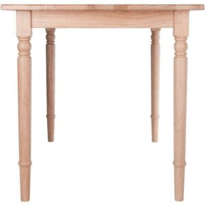 Vintage charm and perfect simplicity are the hallmarks of the Winsome Wood Ravenna Dining Table. The warmth of wood in a classic natural finish will anchor your dining room or kitchen, allowing for creative and colorful choices in surrounding decor. A suitable table for a breakfast nook, for a studio apartment, or comfortably sits a family of four in the dining room. The table has classically turned legs, gently rounded corners, and full aprons, all contributing to a welcoming feel in this farmhouse-style table. At over 47″ wide, it can seat six, and yet won’t overwhelm smaller dining areas. Made of remarkably sturdy solid wood, this handsome piece will mesh beautifully with just about any decor. Complete you Ravenna dining table with a set of chairs from Winsome Wood to create a more unified space (each sold separately). With generous height clearance from floor to aprons at 26.73 H, this allows for dining chairs of any style. Conveniently packed and shipped in 1 box, that includes the hardware necessary for assembling.