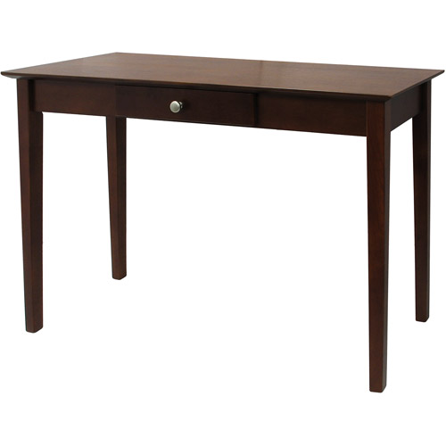 Instantly dress up any room with the winsome Rochester Console Table. This item features a beautiful antique walnut finish. It has a sleek design with clean and simple lines which would complement any interior space. Its slender, rectangular top provides a surface for a variety of uses. The table can accommodate a number of accent items. A single middle drawer completes the look of this antique walnut console table while providing a convenient storage solution. The drawer features hardware in a brushed nickel finish. The Assembly of this versatile furniture piece is quick and easy. This console table with drawer is part of the Rochester collection.