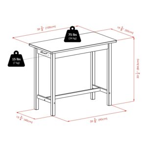 – Table dimensions: 39.37W x 19.69D x 33.27H in.