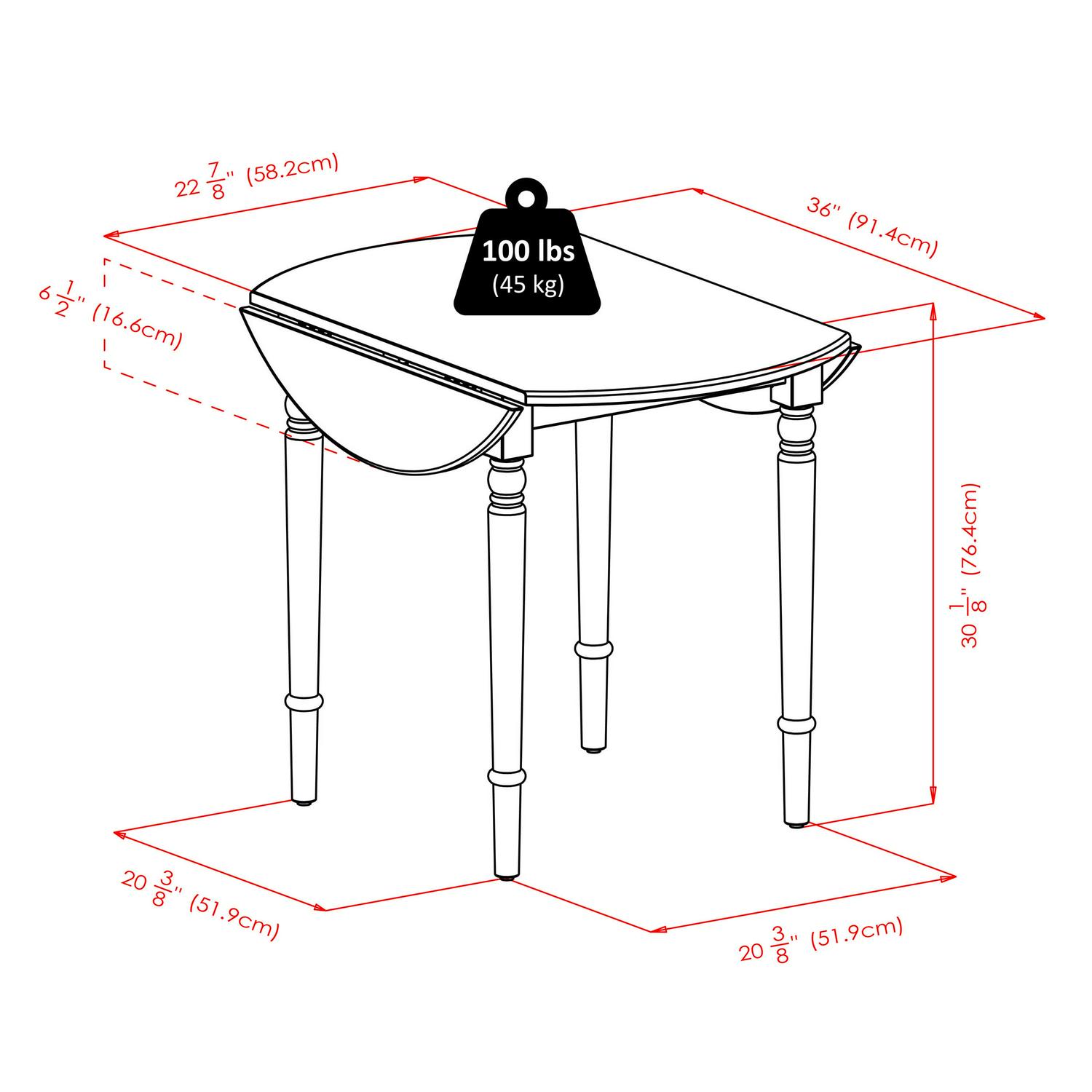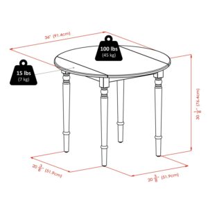 The Winsome Wood Sorella Round Drop Leaf Table offers a classic, modern farmhouse look. It features two drop leaves that, when open, create a 36″ round table. When space is limited, lower one or both leaves to create the size that best suits your needs. In between meals, fold the leaves down to convert the table into a console. The graceful detailing of the turned legs and the full aprons provide a solid base for the round top and its two drop leaves. Constructed of solid wood for long-lasting durability highlighted by the warmth of the natural wood table top with a white bottom leg base. Generous height clearance that allows for dining chairs of any style to fit. Conveniently packed and shipped in 1 box with hardware necessary for assembly.