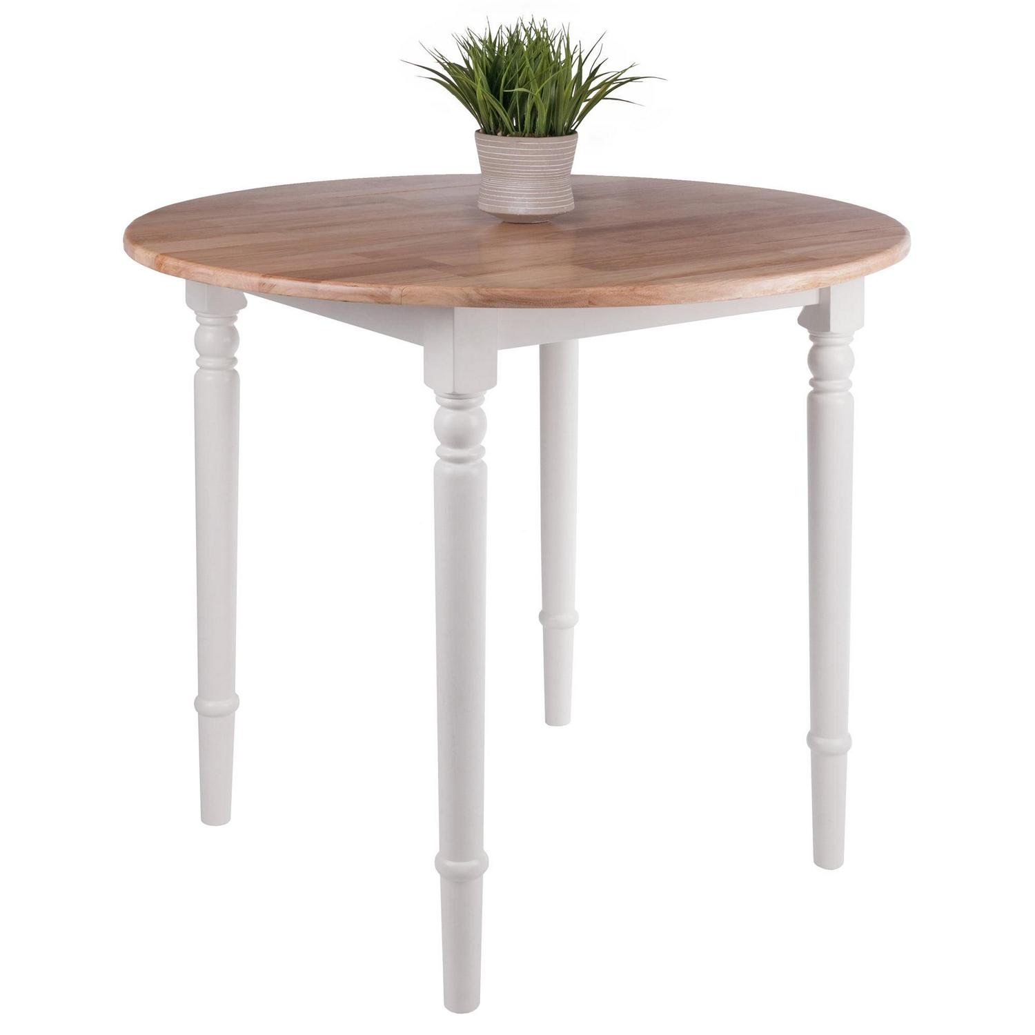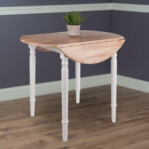 Winsome Wood Sorella Round Drop Leaf Dining Table, Natural and White Finish