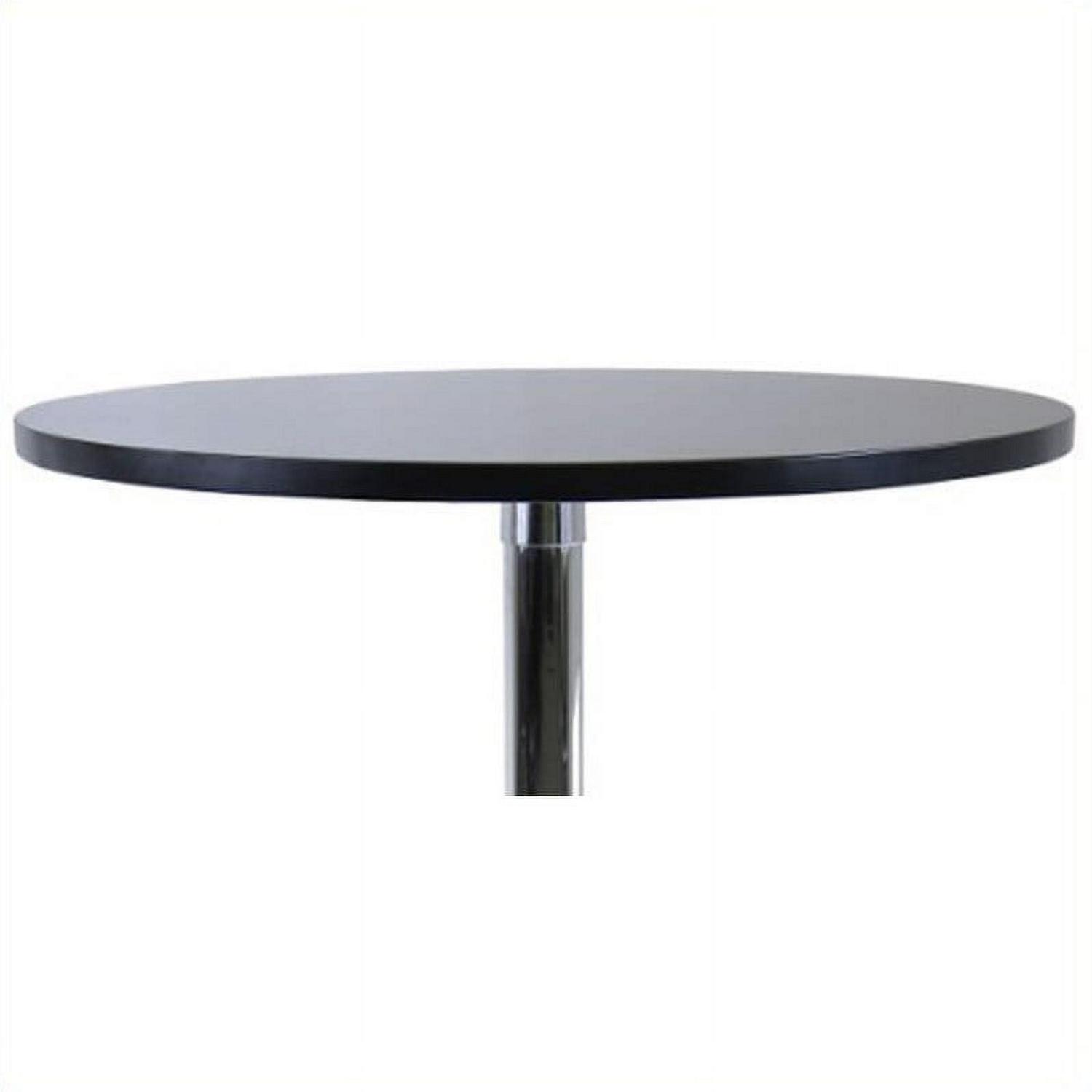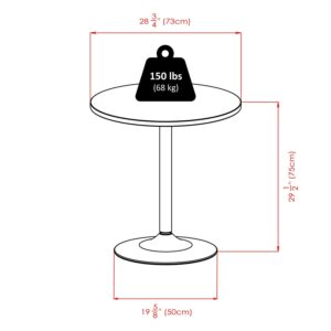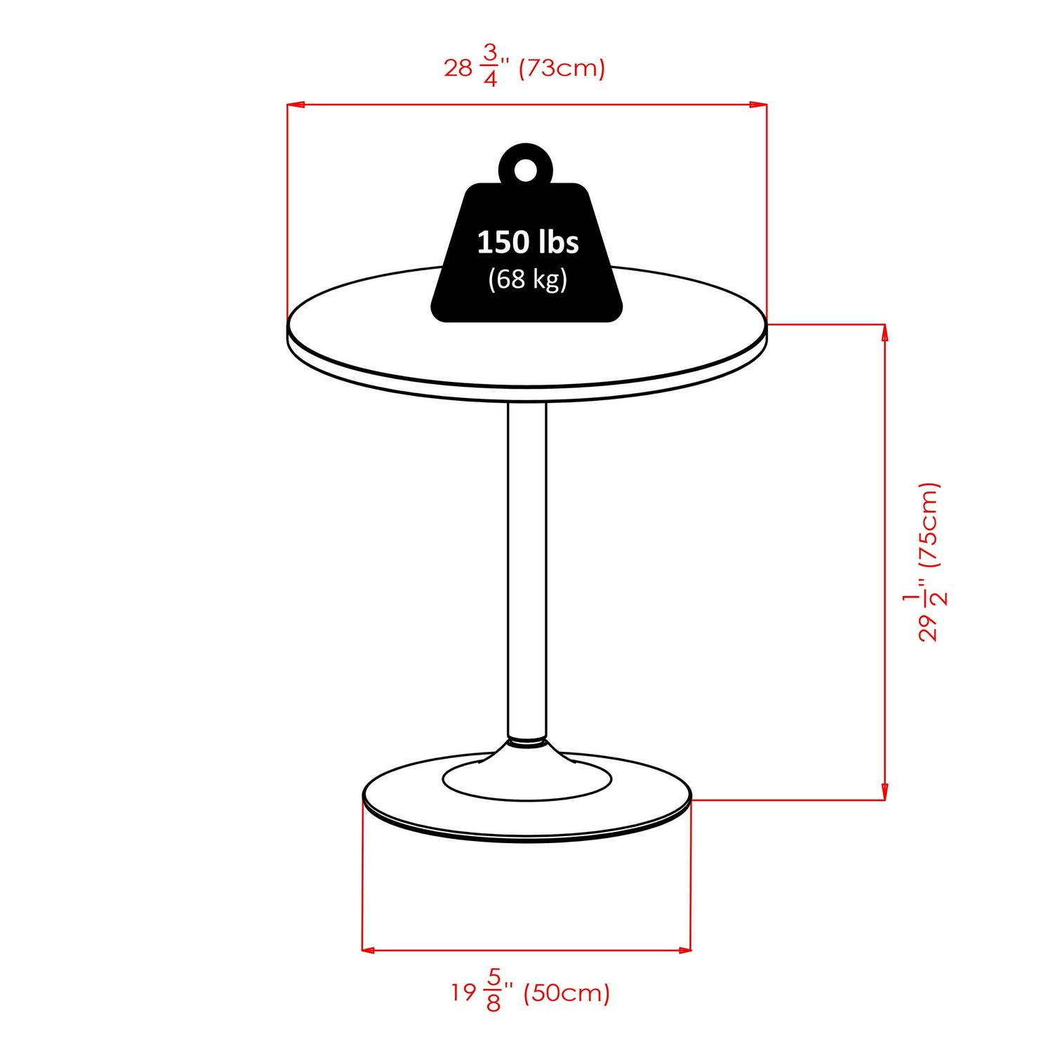 Update your home decor with a stunning blend of simplicity with a modern flair with the Winsome Wood Spectrum Dining Table. Compact yet still sophisticated style of this set makes it a great addition to any area; ideal for dining or social gatherings. With a diameter of 28.7 , the pub table top is constructed of a smooth, sturdy wood composite tabletop in black, ample space to have a meal or snacks. With a sleek steel with chrome plated finish pedestal base that sits the table up at 29.5 H. Accommodates standard sized bistro chairs for a practical and stylish setting, and a static weight capacity of up to 50 lbs that is perfect for entertaining or a Sunday brunch. This indoor dining features a modern design that blends seamlessly with a variety of home decor. Conveniently packed and shipped in 1 box, that includes the hardware necessary for assembling.