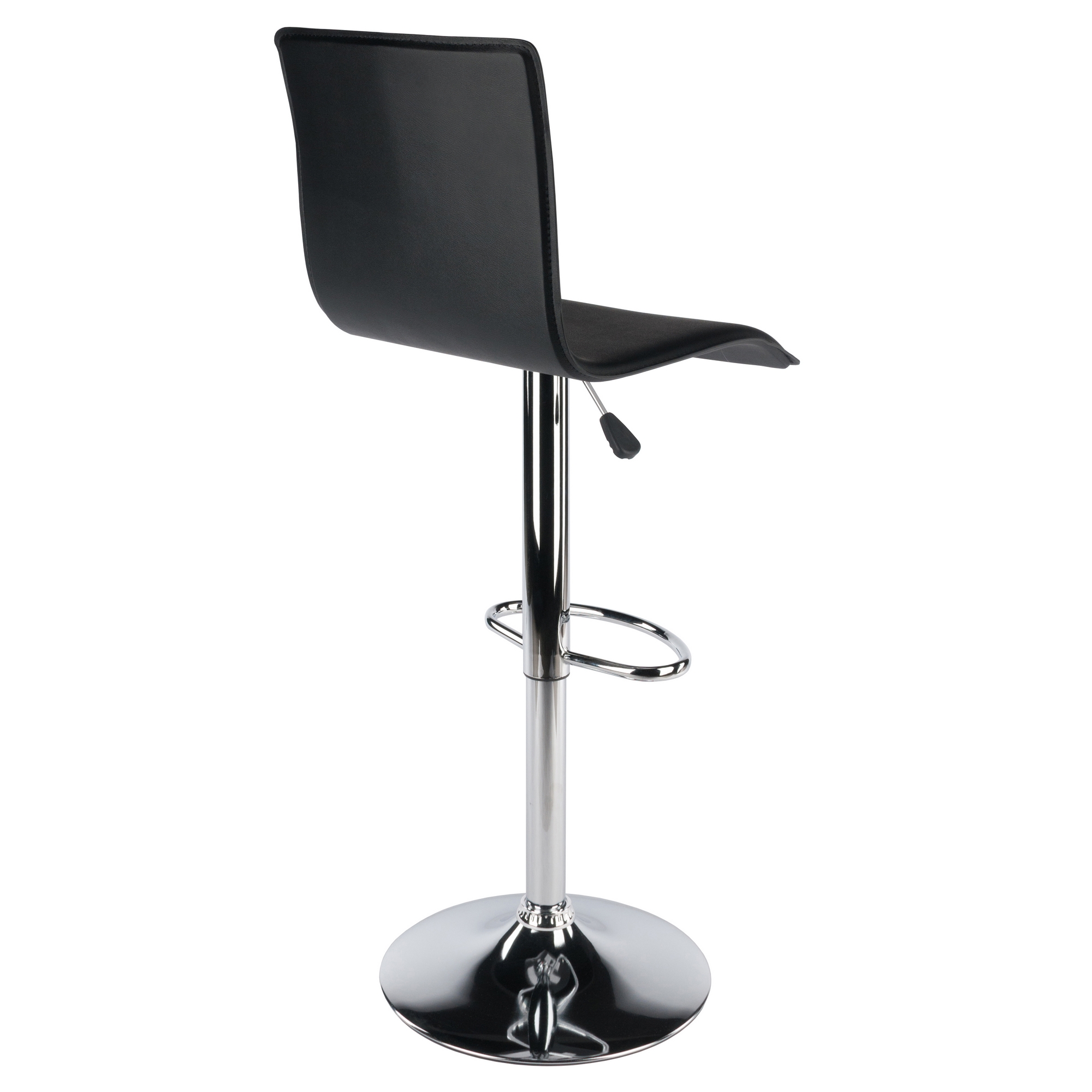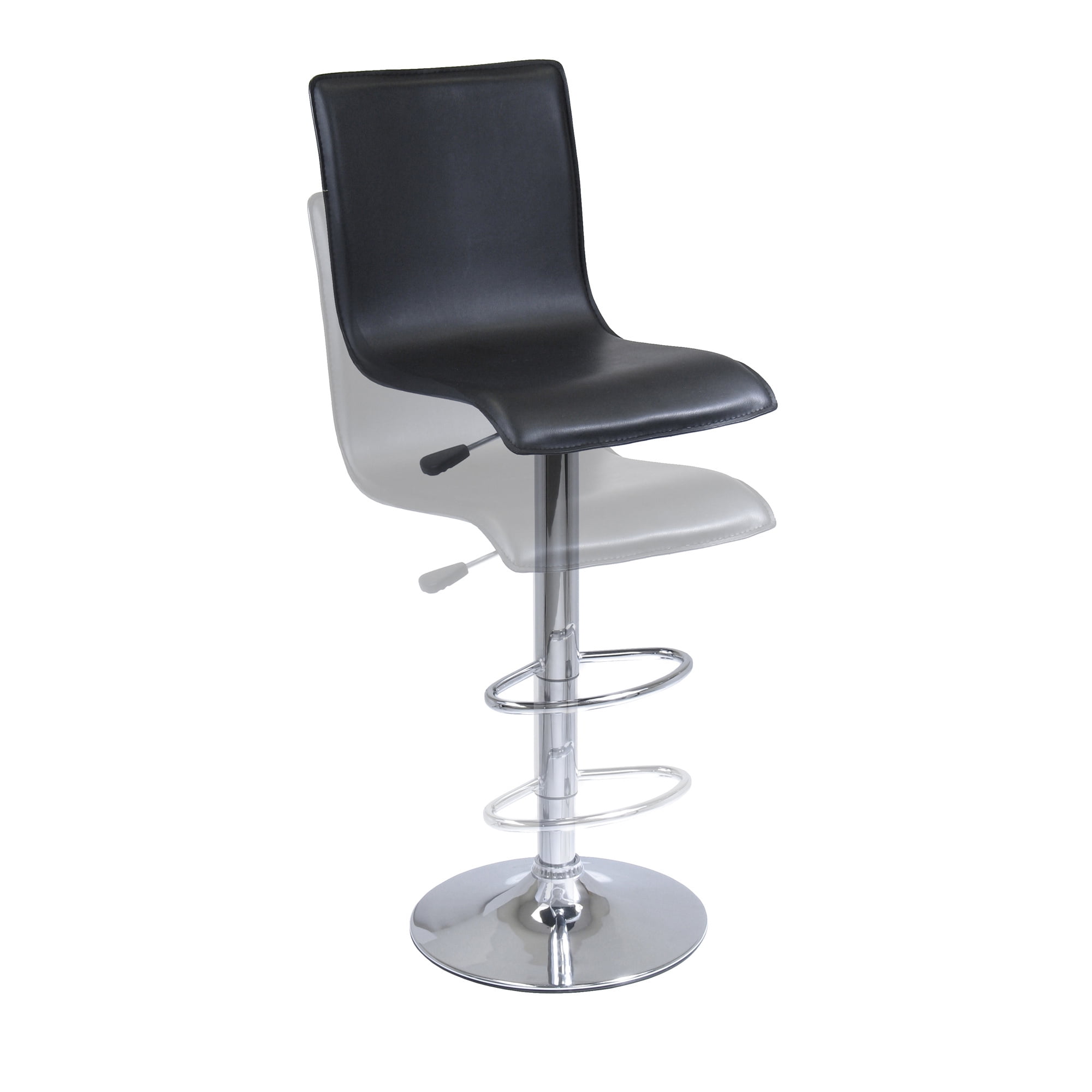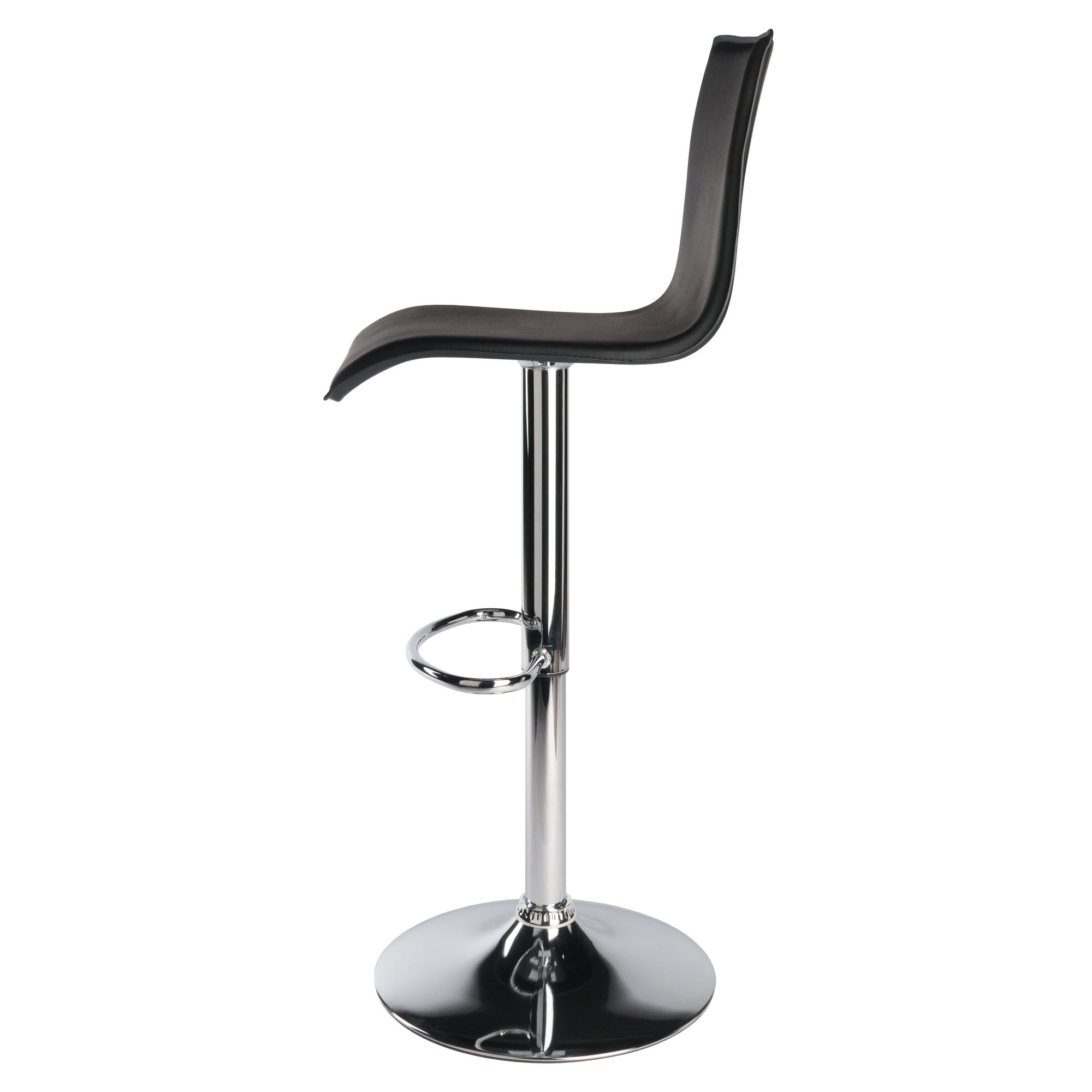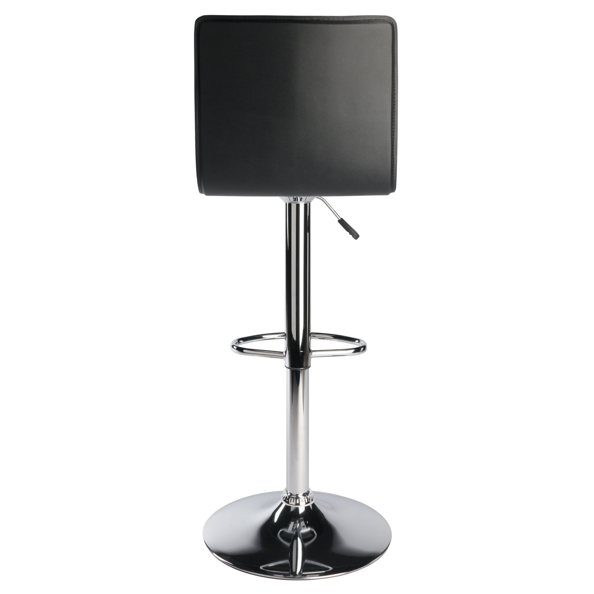 Adjust your seat with this Winsome Wood Spectrum High Back Airlift Adjustable Swivel Stool, it is the smart seating solution with a modern twist. This trendy bar stool features a black, sleek faux leather seat and a steel with chrome plated finish base. The back rest is 15.99”H and will prove to be great support while the curved seat provides extra comfort for those spending long hours sitting at the bar. Your guests can have their seat at their preferred height, raised up to 31.43” or easily lowered to 23” by just lifting the leveler on the side, making these suitable for all guest. This versatile bar stool swivel up to 360 degrees for extra utility and a has a foot bar providing that additional comfort. The base is just over 16” which also helps provide durability and sturdiness for long-lasting wear. This is a single stool that is conveniently shipped in 1 box that includes the hardware necessary for assembling.