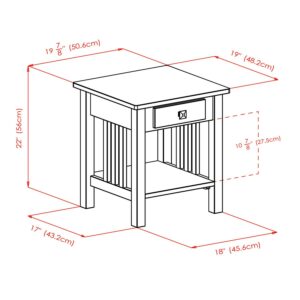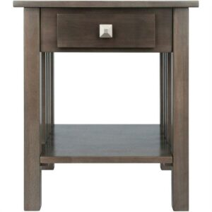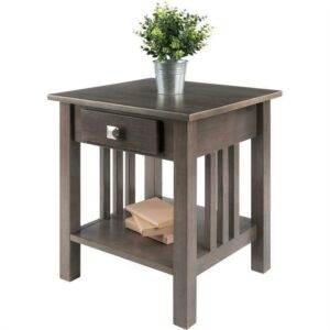 A handsome blend of classic and contemporary styling enables the Winsome Wood Stafford End Table to complement any decor. The mission-like slatted side panels create an open feel while the oyster gray finish gives it a modern touch. Featuring one drawer making this accent table just right by your bedside for a reading lamp, storing small personal accessories out of sight, yet within easy reach for your convenience. The drawer is tastefully accented with a beveled silver-finish pull. An open lower shelf is ideal for keeping books and magazines. Use this all-around end table in the living room next to the sofa or a printer stand in your home office. For larger beds, sofas or rooms, try adding one accent table on each end and coordinate with other furnishings from the Winsome Stafford collection for a cohesive look throughout your home (each sold separately). Solid and composite wood construction for long-lasting beauty and durability. Conveniently packed and shipped in 1 box that includes the hardware necessary for assembling.
