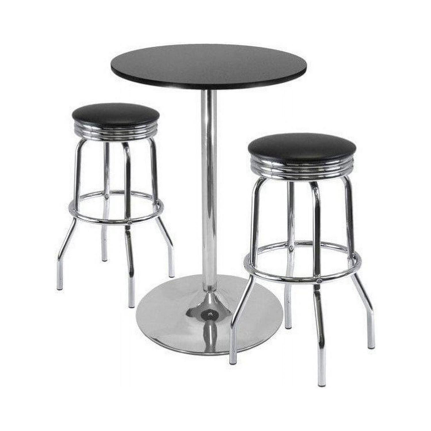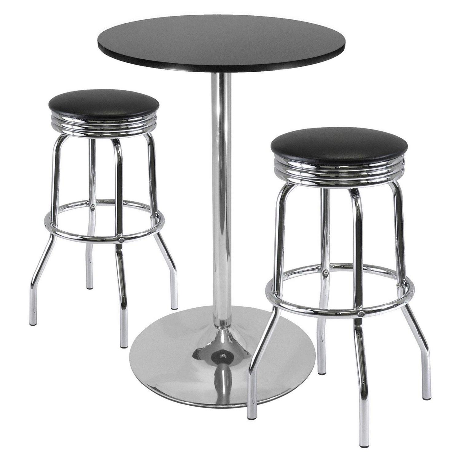 Winsome Wood Summit 3-Pc Pub Table and Swivel Stool Set, Black and Chrome