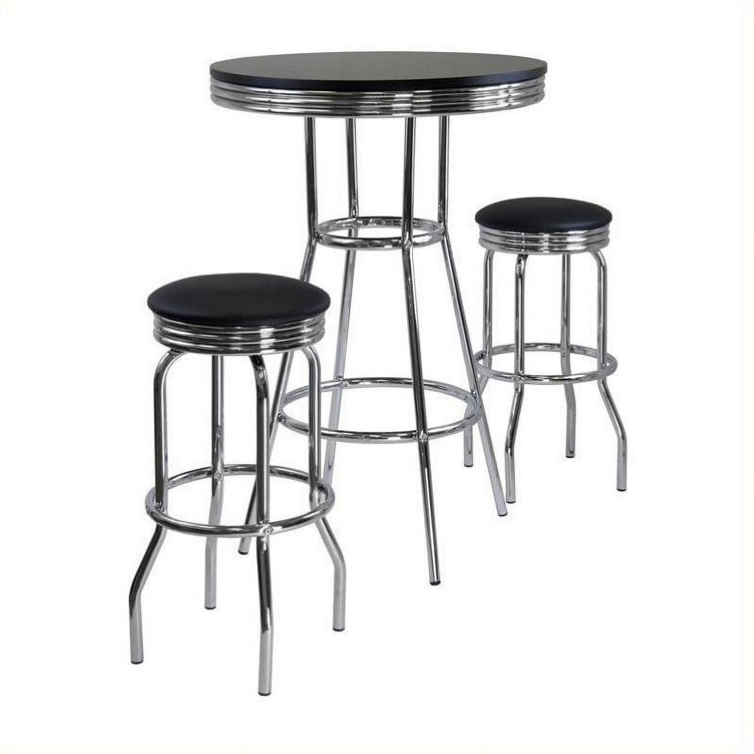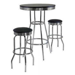 Winsome Wood Summit 3-Piece Pub Table and Swivel stool Set, Black and Chrome