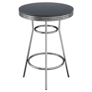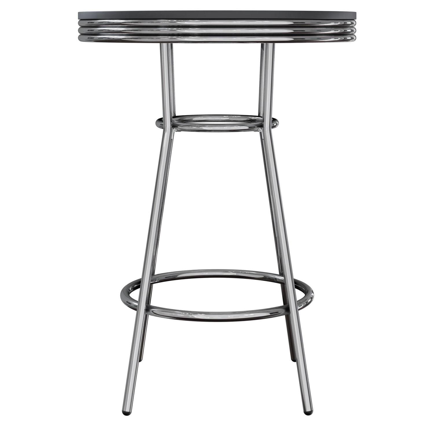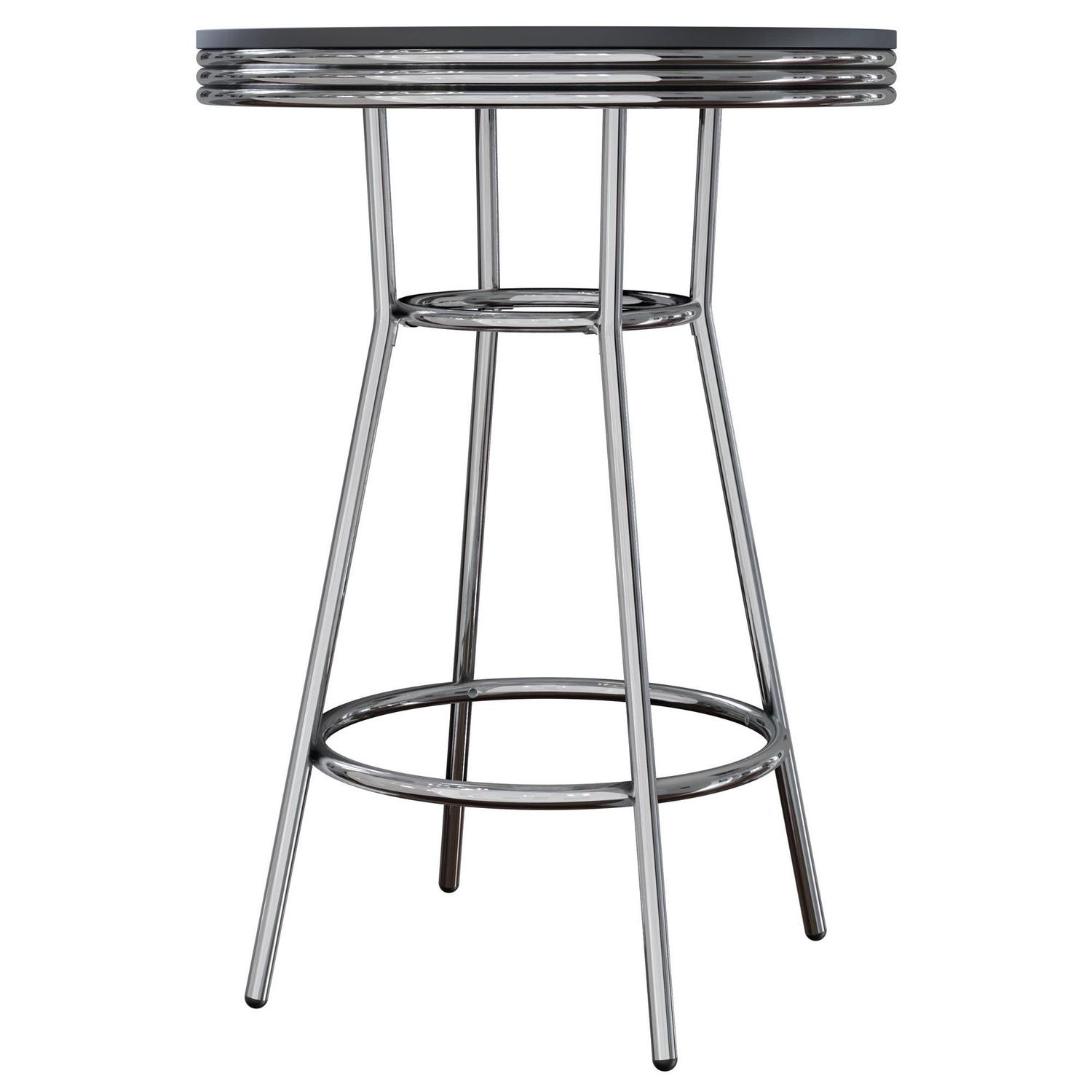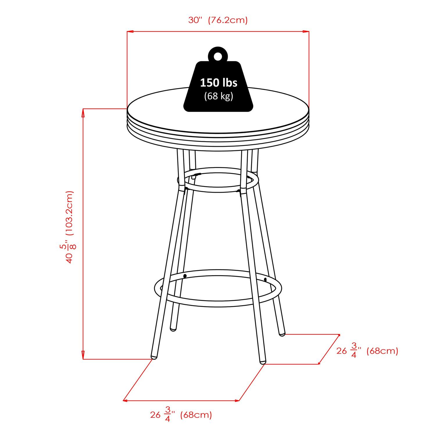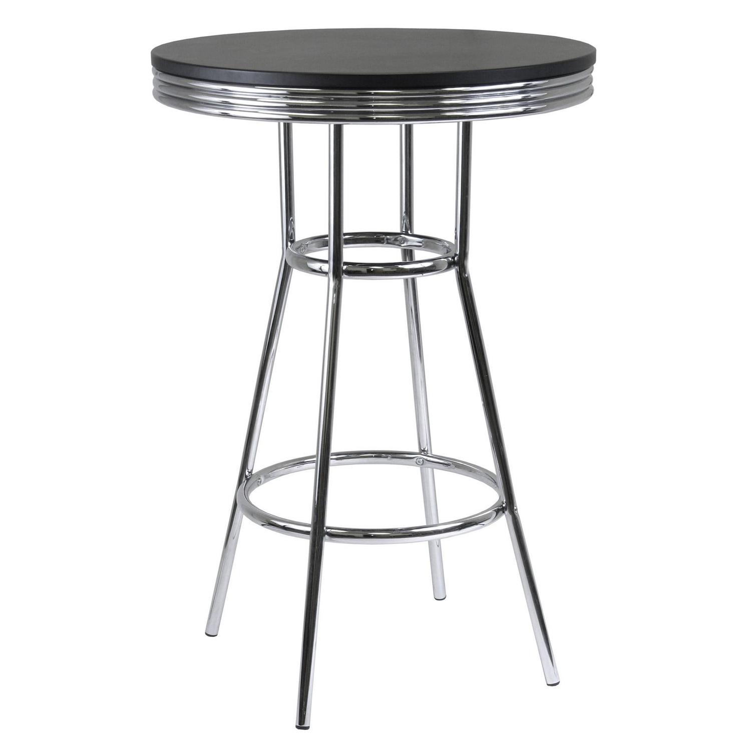 Give your home a new look with the Winsome Wood Summit Pub Table. A stunning blend of modern and retro. Compact yet still sophisticated style of this table makes it a great addition to any area; ideal for dining or social gatherings. With a diameter of 30 , the pub table top is constructed of a smooth, sturdy PVC and wood composite tabletop in black. With a chrome plated finish frame and ring design that complements the legs that set a 26.77 foot print. The metal ring connecting to all four legs toward the bottom, sits up 10.59 from the ground, this helps provide stability to the structure of the table, while adding support to rest your feet. Sitting up at 40.61 high, this pub table can be pair with the matching set of Winsome Wood Summit Bar Stools for a more unified space (sold separately). Conveniently shipped in 1 box, that includes the hardware necessary for assembling.