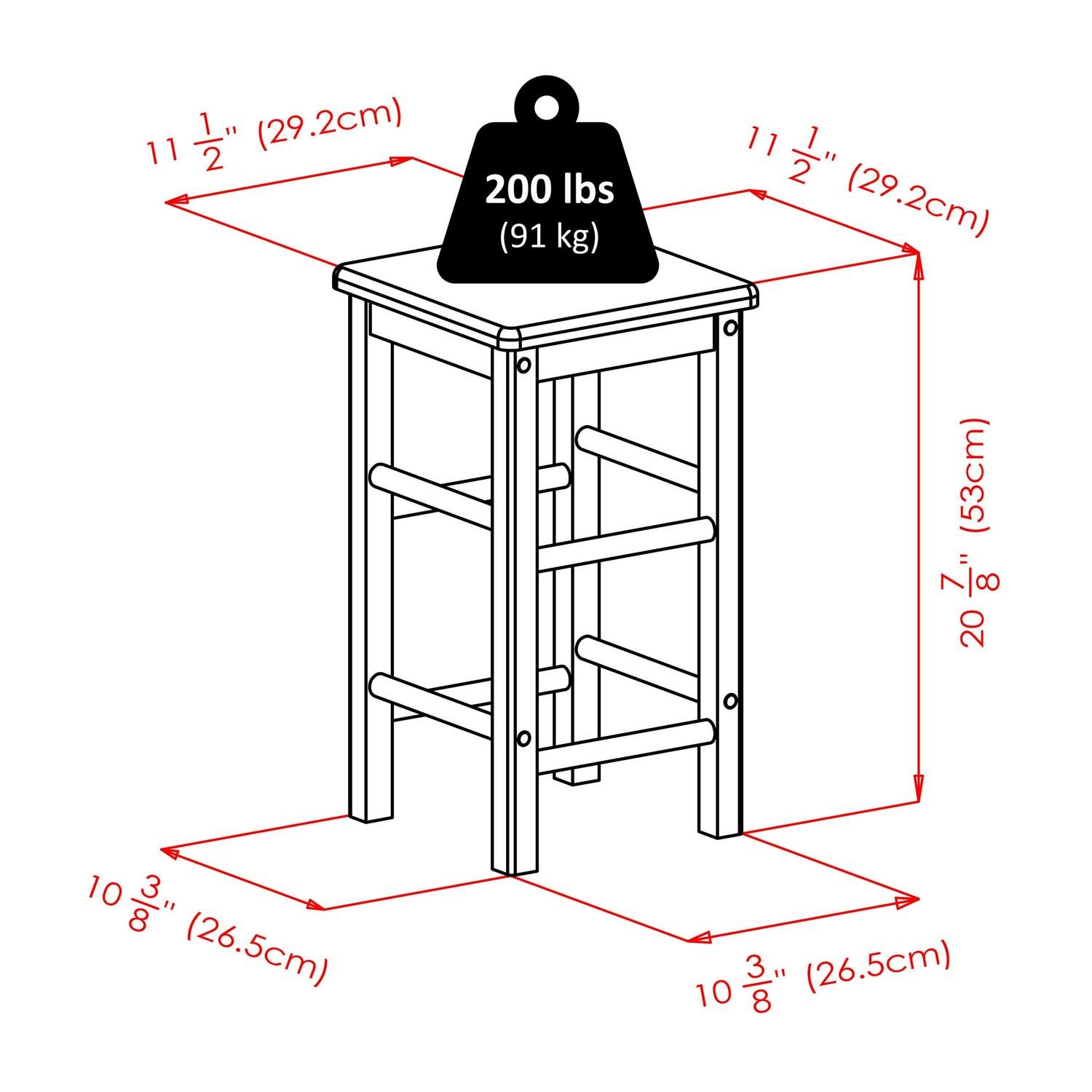– Stool assembled dimensions: 11.5inW x 11.5inD x 20.87inH