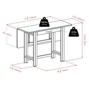 Simple elegance and versatility define the Winsome Wood Taylor Drop Leaf Table. Use it as a console in the dining area or kitchen with the drop leaf down. Lift the drop leaf to double the table size for dining. It’s also an ideal addition to the family room to spread out games, puzzles, or to use as an additional workspace. This drop leaf offers exceptional versatility and makes this an excellent choice for a studio apartment or small space. An easy glide, table-wide drawer provides storage for silverware, placemats, games, or personal electronic devices. The drop leaf is well supported by folding side panels, these legs have built-in floor protectors to prevent scuffing. Complete your dining table or work area with a set of Winsome Wood chairs in the same finish for a more unified space (sold separately). Constructed of solid wood for long-lasting durability and finished in rich walnut with a brushed nickel drawer handle, this table is sure to go well with just about any decor. Conveniently packed and shipped in 1 box, that includes the hardware necessary for assembling.