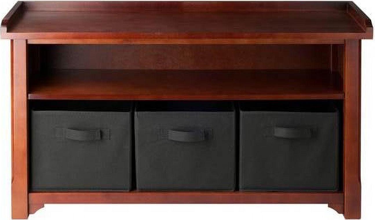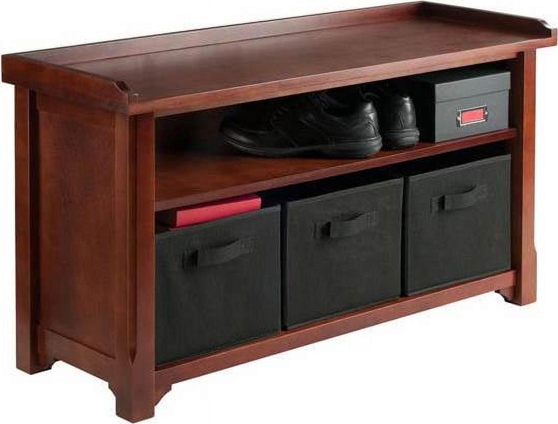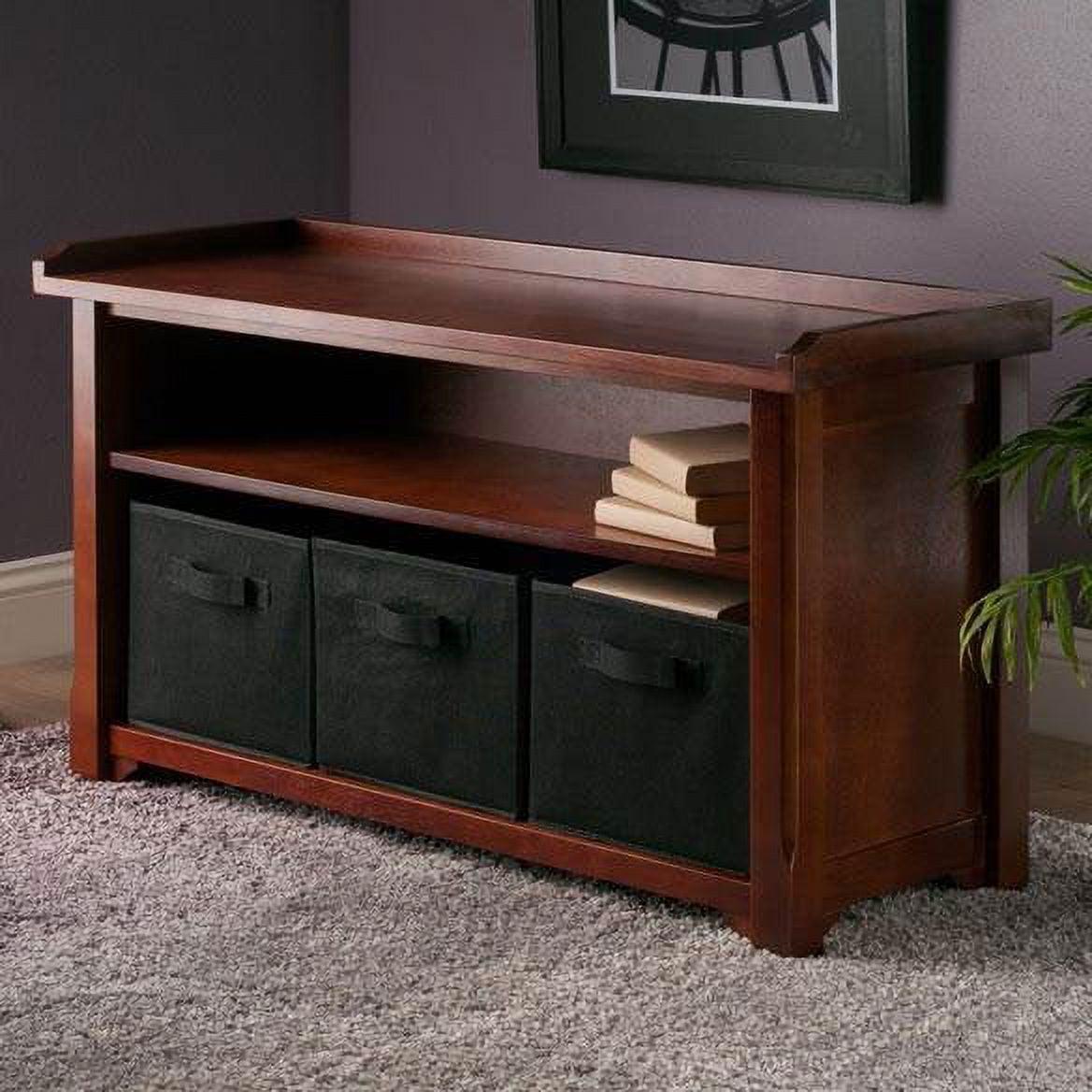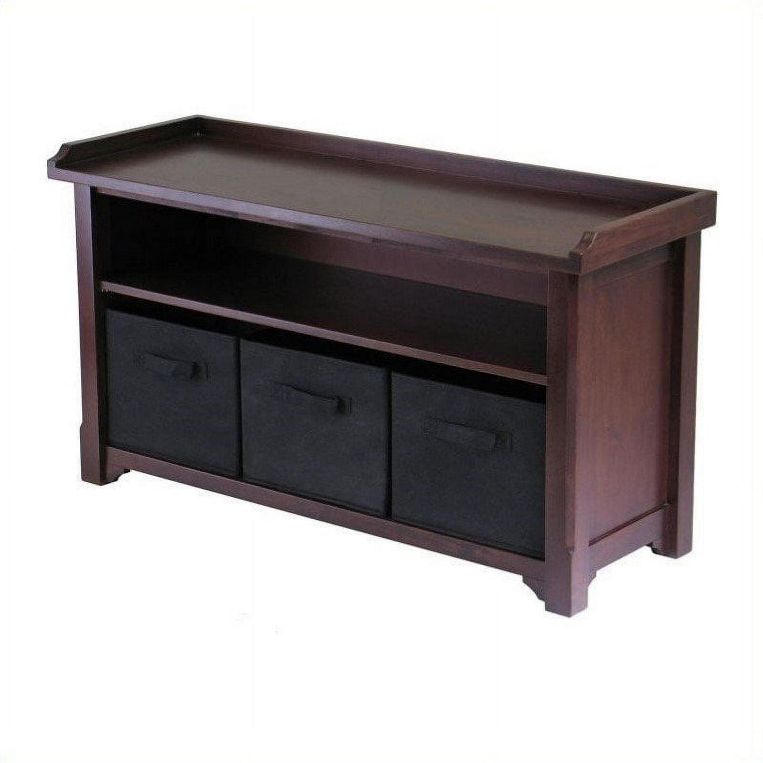 Winsome Wood Verona 4-Pc Storage Bench with 3 Foldable Fabric Baskets, Black and Walnut