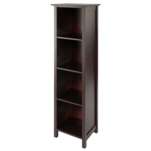 Winsome Wood Verona 5-Pc 4-Tier Storage Shelf with 4 Foldable Fabric Baskets, Walnut and Black