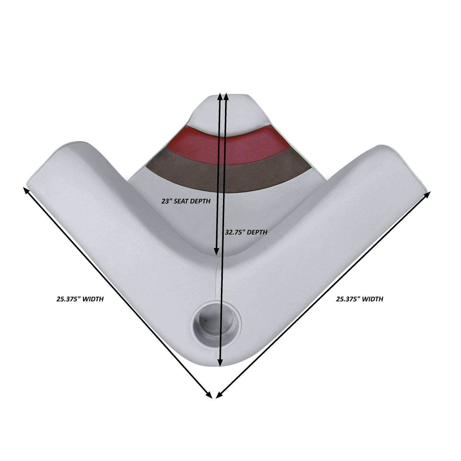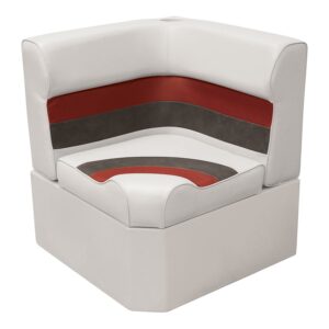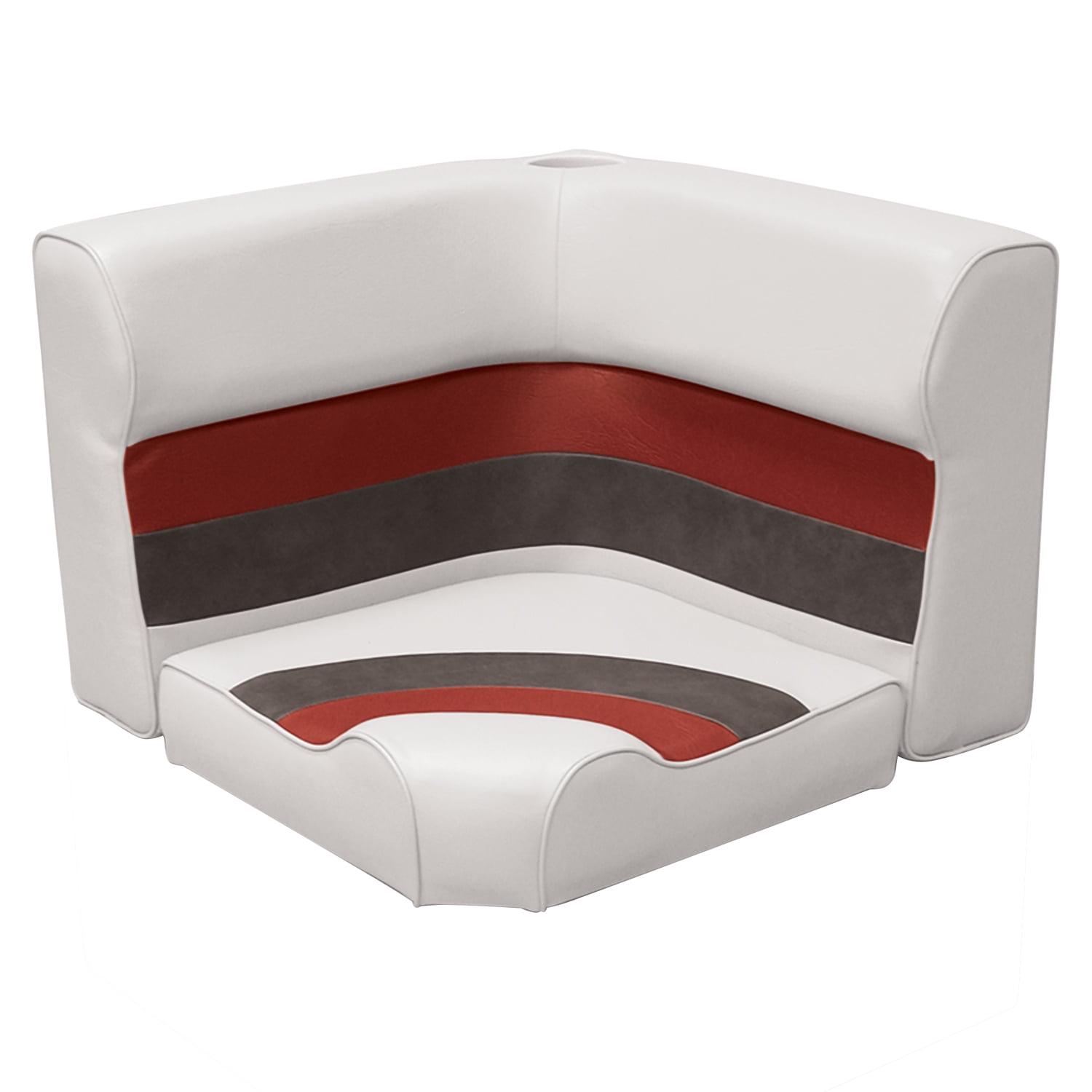 Deluxe Series Pontoon Radius Corner Seat and Backrest Cushion Set Designed to attach to Wise #8WD133-1B-204 White Deluxe Series Pontoon Radius Corner Base. Color: White/Red/Charcoal