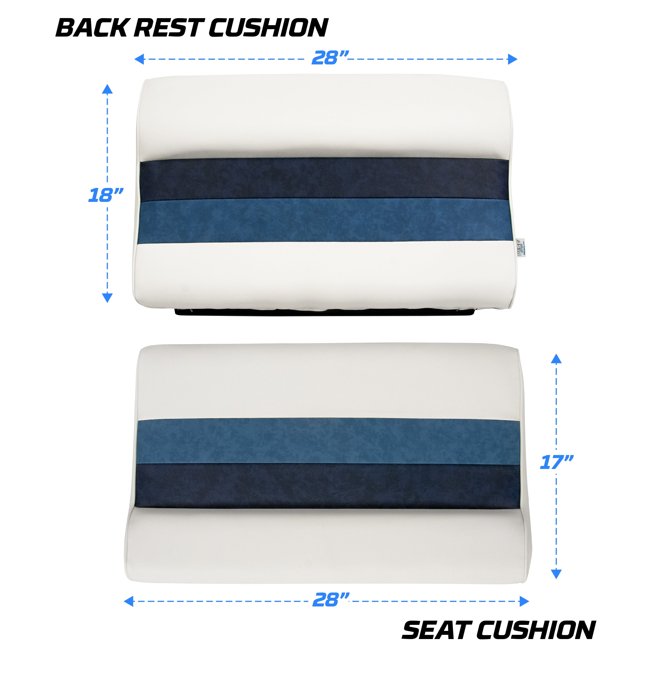 Wise 8WD95-1008 Deluxe Series Pontoon 28″ Bench Seat and Backrest Cushion Set, White/Navy/Blue