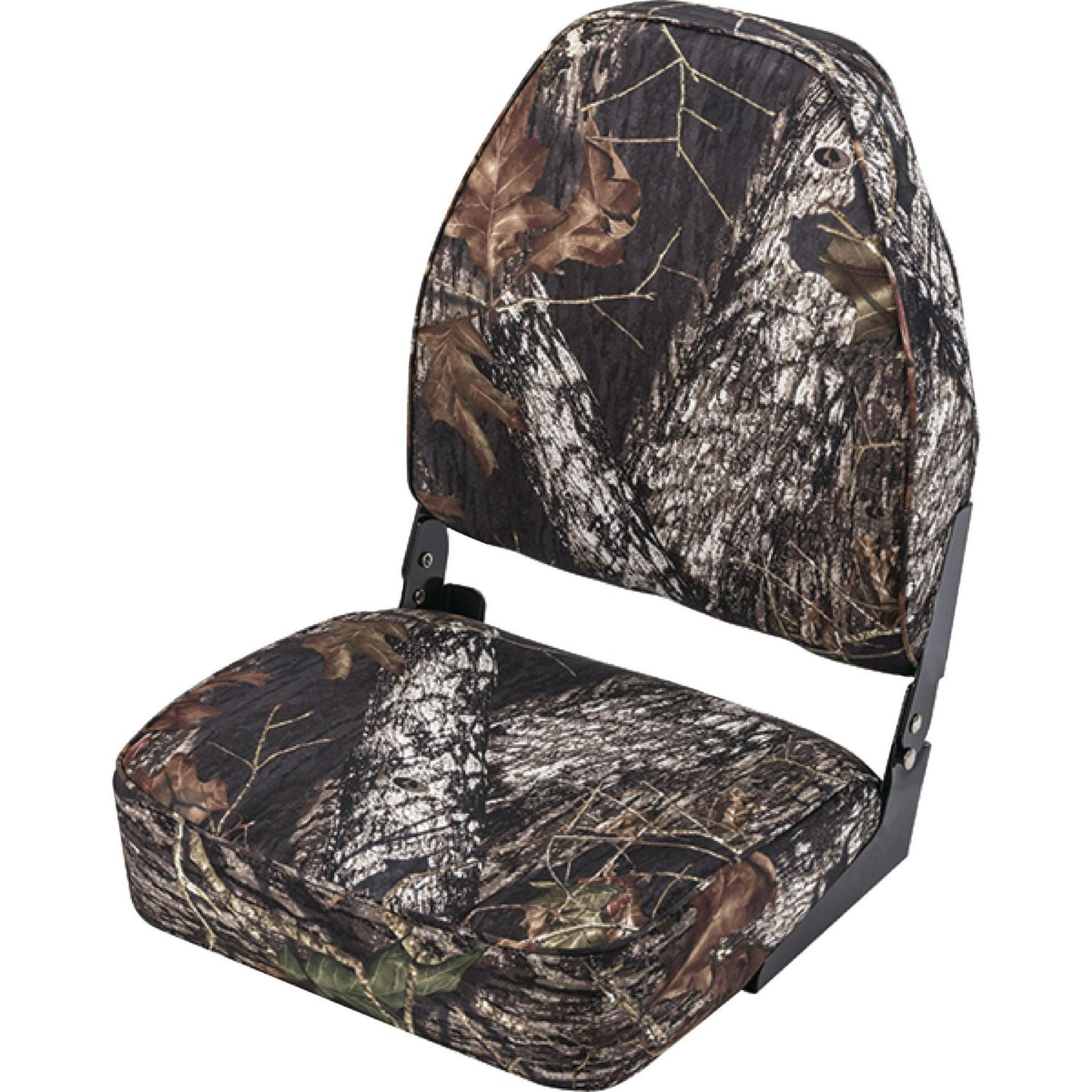 With a black injection-molded high-impact marine grade plastic frame. Aluminum hinges with a “no-pinch” design. Camo Cordura fabric covering with 500 denier comfort and support are provided with a marine-grade high compression foam padding. Attaches to any bias swivel with supplied fasteners / standard 4 bolt, 5 1/4″ bolt pattern pedestal system. The Wise 8wd617 series high back camouflage folding boat seat has a plastic injection molded seat frame, high compression foam padding, 500 denier camo fabric, black aluminum hinges, and mounts to any Bia standard 4 bolt pedestal system.