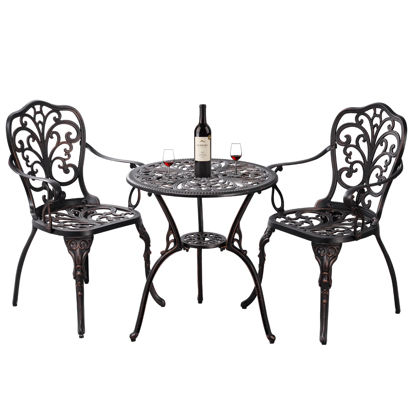 Withniture 3-Piece Bistro Table and Chairs Set of 2 Outdoor Furniture Patio Bistro Set, Bronze