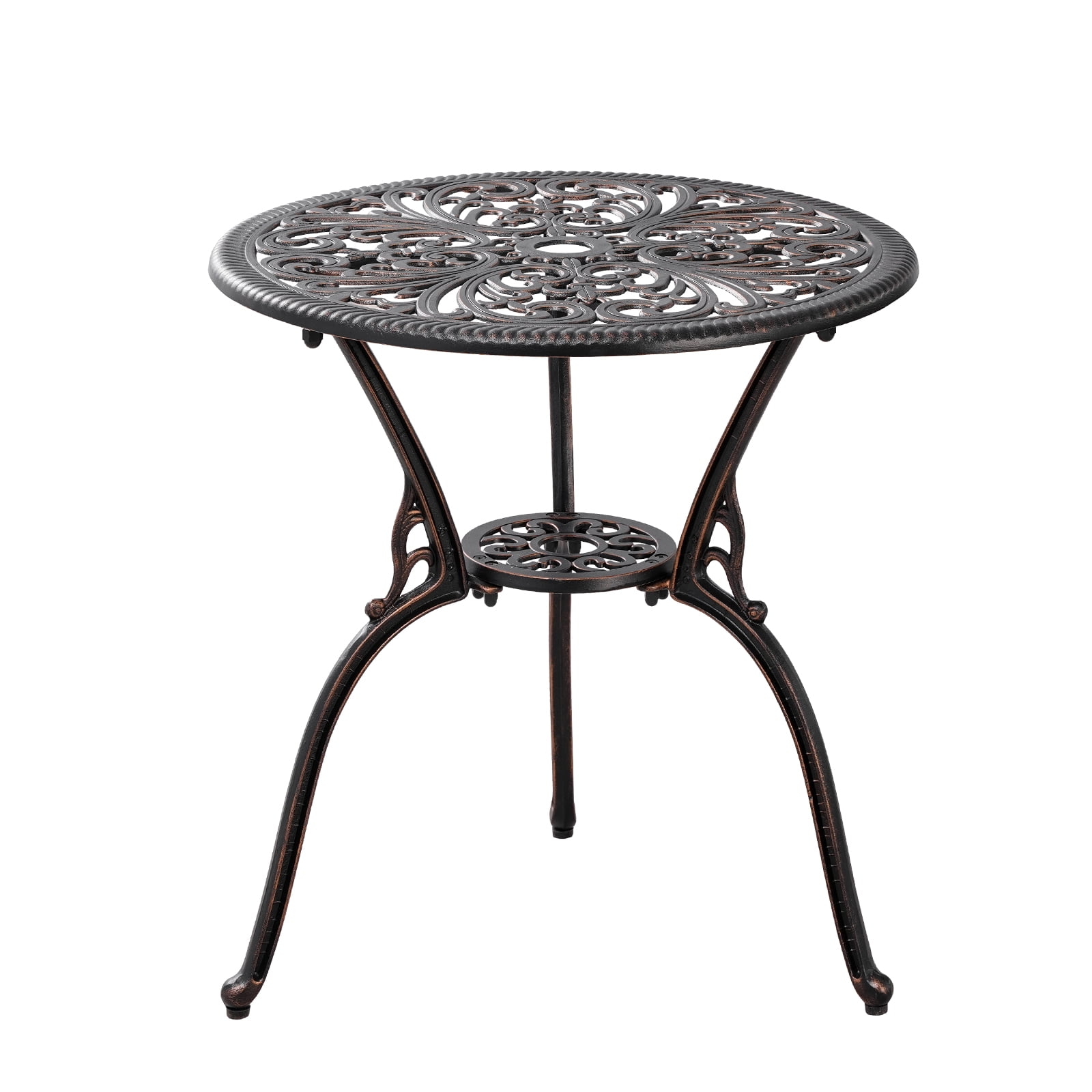 Our 3 piece outdoor bistro set includes a round table and 2 chairs for the perfect setting. Whether you live in a town or cottage, having a backyard is a great luxury. As an extension of the home, you and your friends can have a pleasant conversation in the two chairs, and this bistro table with umbrella holes can hold an outdoor umbrella to protect you from the wind and rain, making it perfect for dining and enjoying a few cups of coffee. The entire frame of the bistro table and chairs is made of all-weather-cast aluminum material for durability and long life. The ergonomic chair design relaxes your whole body and brings the most comfortable experience to enjoy this leisure time. Complete installation manual and toolkit will help you to assemble it easily without any difficulties. This attractive bistro table set is coated with a rust and fade-resistant powder coating that is sure to maintain its beauty whether you place it by the pool, lawn, garden, patio, backyard, etc.