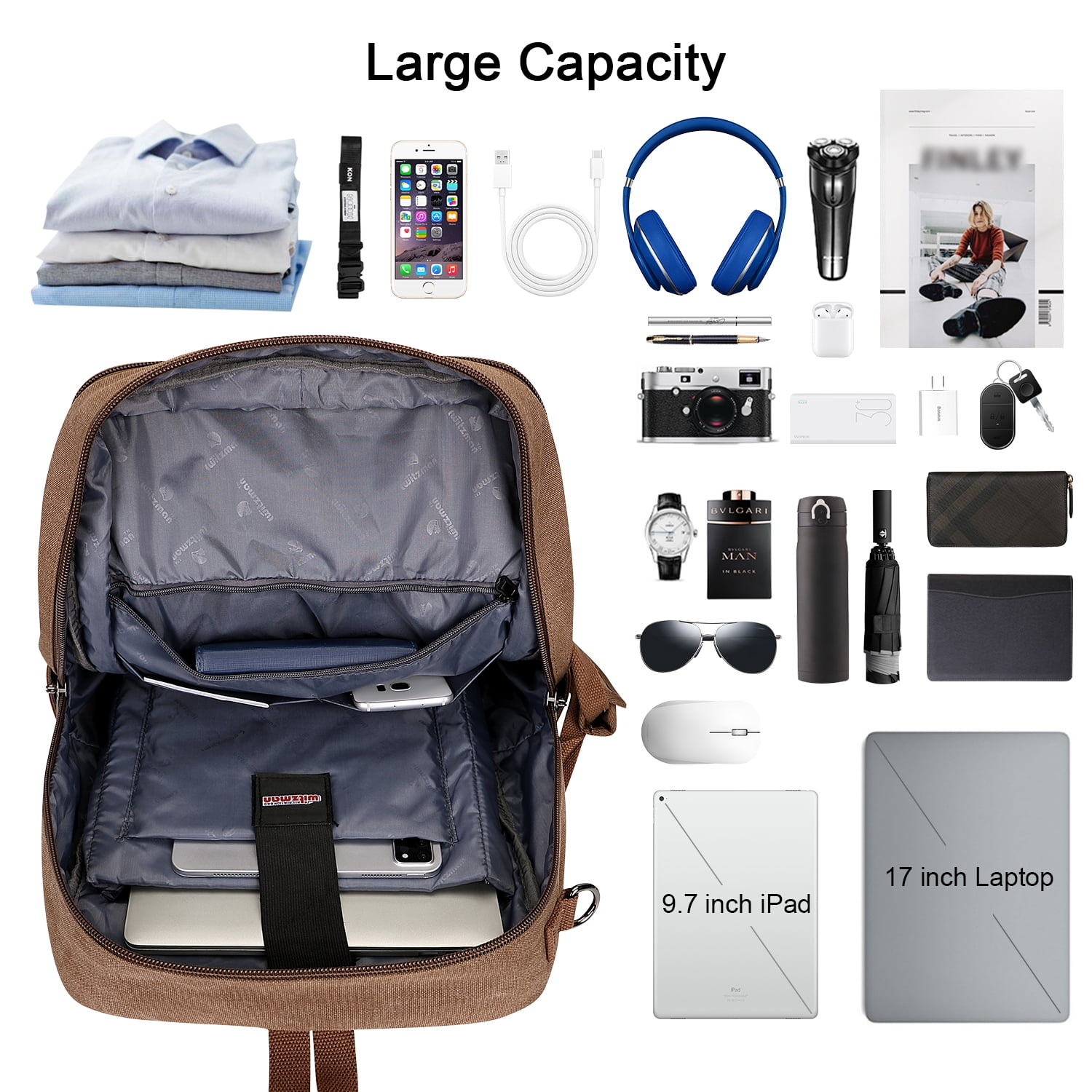Vintage Travel Laptop Backpack Canvas Duffle Bag for Men Women, which is combination of retro fabrics and fashionable styles.High quality zipper with WITZMAN logo. Unisex, suitable for adult.There are 3 colors for you: Black, Brown, Army Green. You can use it as backpack, duffel bag or handbag for travel, hiking, or other outdoor activities. Large capacity with multiple pockets to store daily supplies. And the laptop compartment can fits up to 17-inch laptop/notebook, and the laptop compartment is designed with padded to protect your devices. This backpack meets the maximum size allowed by IATA flights, can be fitted overhead and under-seat. Great gift choice for your family and friends for Valentine’s Day, Anniversary, Birthday, Christmas, New Year and Thanksgiving Day.