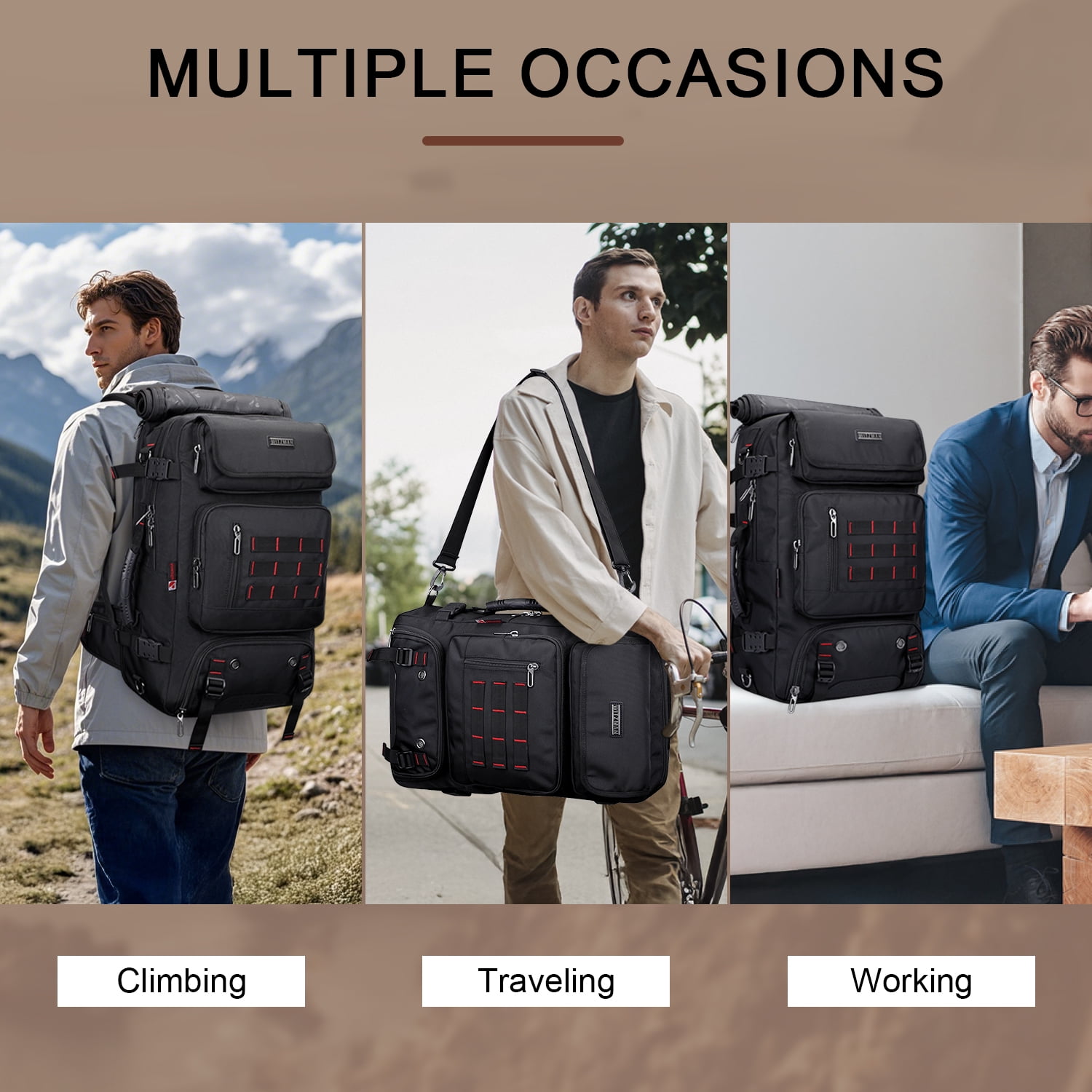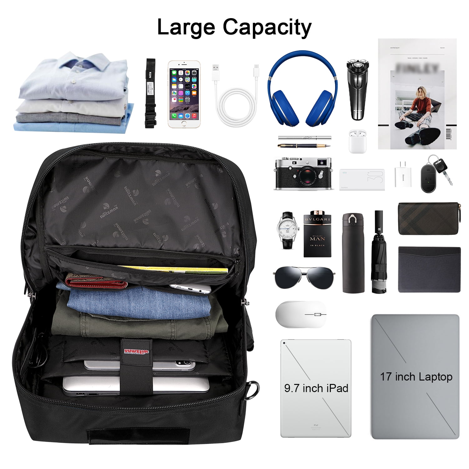The bag made of high quality Nylon with polyester lining.High quality zipper with WITZMAN logo. 1 bag 3different usage options for backpack, duffel bag, tote bag.This backpack meets the maximum size allowed by IATA flights,can be fitted overhead and under-seat, is ideal for a weekend trip, business trip. Can hold your 17 inch laptop, 2 sets of clothes, shoes, water bottle, umbrella and other items. Travel backpack is large capacity enough for vacation, weekend getaway, overnight trip.Because it has expandable design space is large enough for vacation, weekend getaway, overnight trip. Great gift choice for your family and friends for Valentine’s Day, Anniversary, Birthday, Christmas, New Year and Thanksgiving Day.