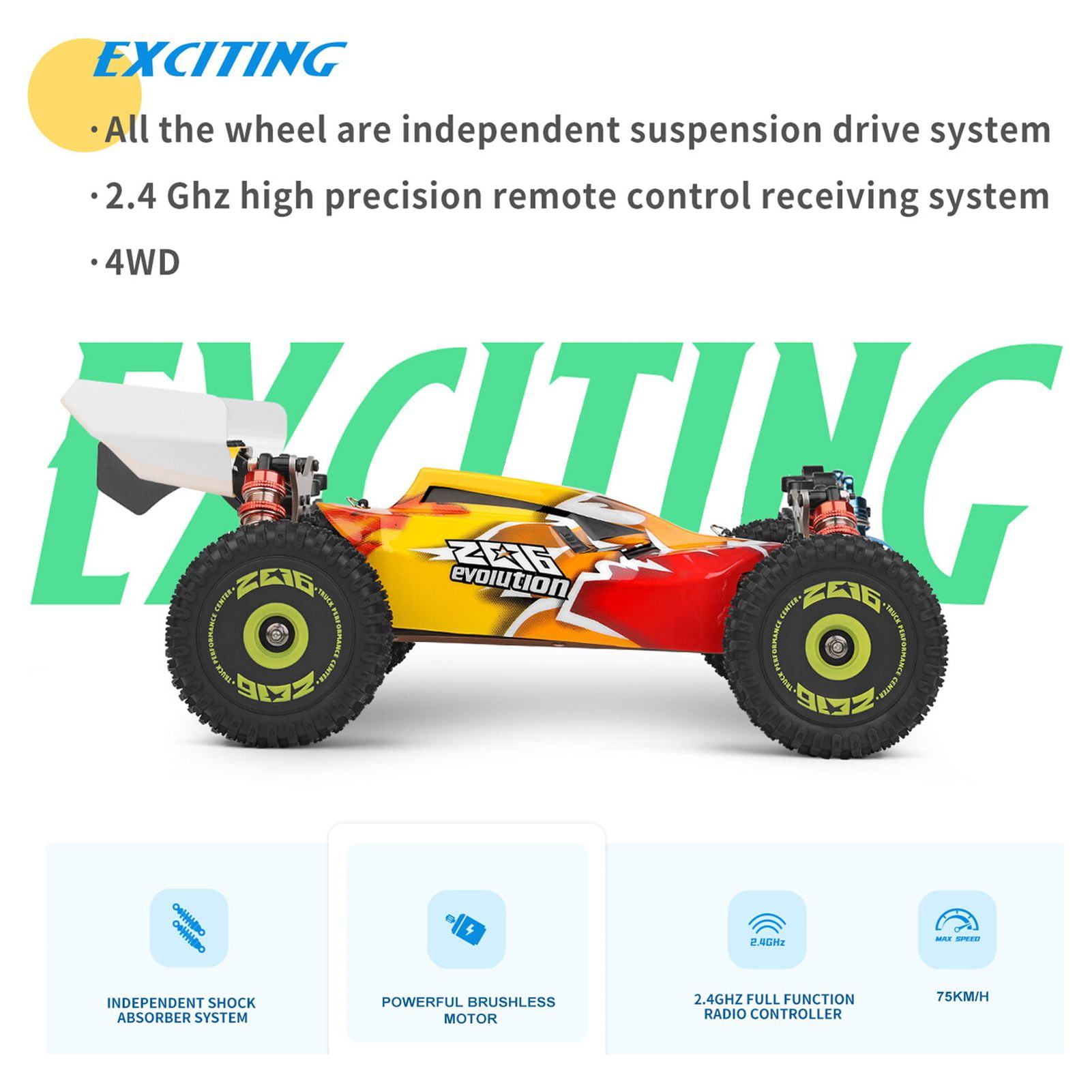 Wltoys 144010 v2 brushless rc car, 1:14 scale 2.4ghz remote control car, 4wd 75km/h high speed racing car, off-road buggy drift car for adults kids. Features 2.4GHz control system, the cool printed shell, metal shock absorber, powerful brushless motor, and large capacity battery offer a flexible, stable high-speed driving experience while providing longer service life. This popular car could give you an excellent sense of controlling and realistic driving experience.