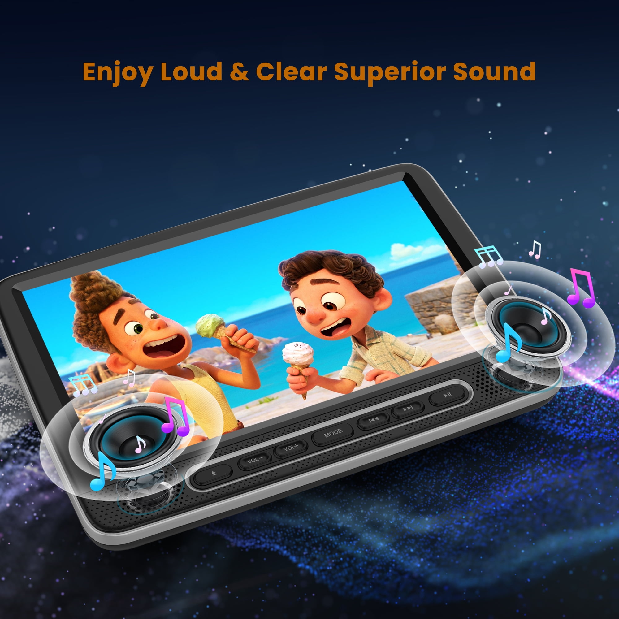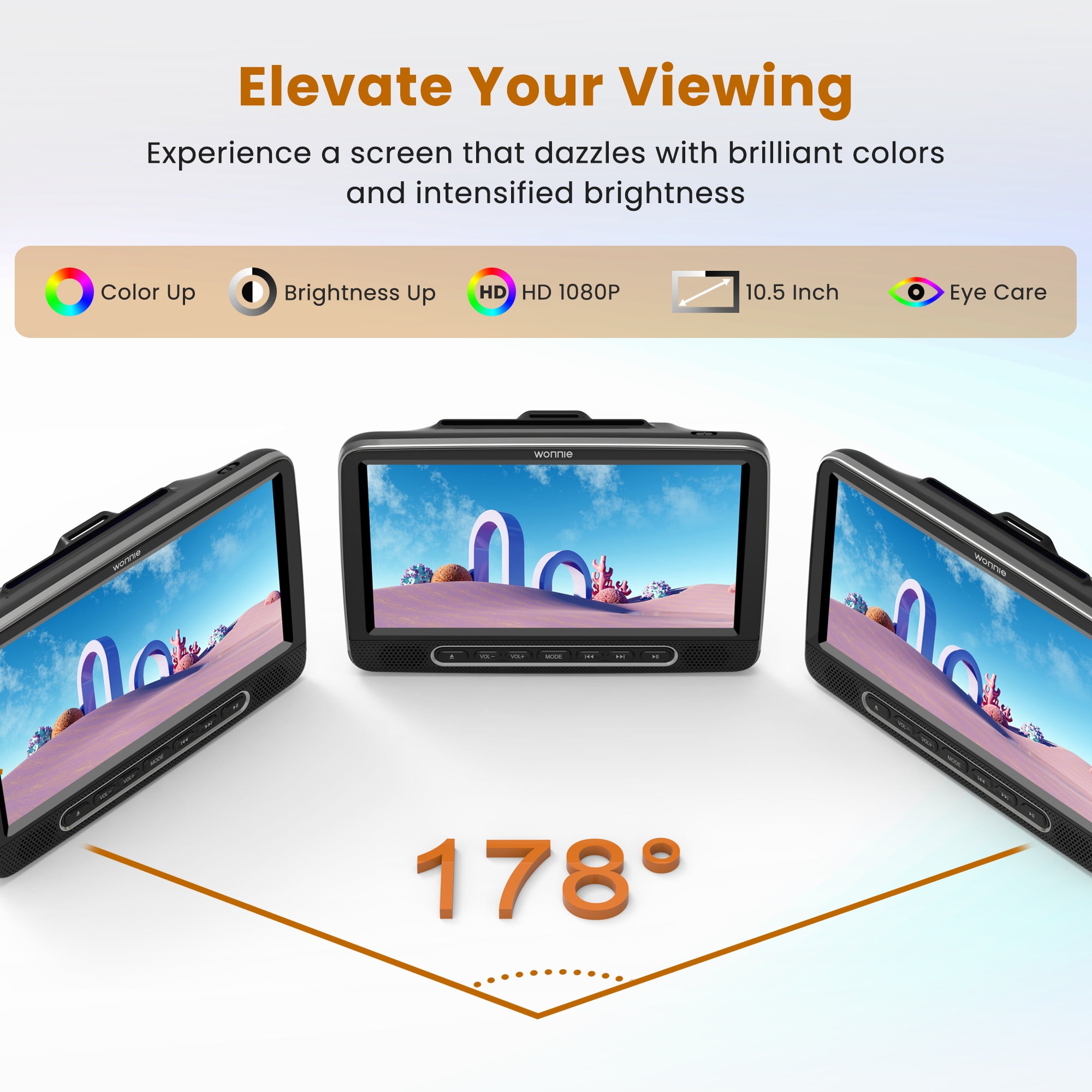 WONNIE 10.5” Portable Dual Screen Car DVD Player, Headrest DVD Player 1080P HD Screen, Car Video Player with Rechargeable Battery, Suction -Type Disc in, Support HDMI IN/Out, AV Out, USB, TF Card