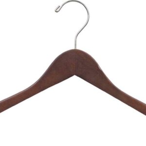 Wood Top Hanger, Box of 100 Space Saving 17 Inch Flat Wooden Hangers w/ Walnut Finish and Chrome Swivel Hook and Notches for Shirt Jacket or Dress by International Hanger