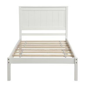 Wood Twin Bed Frame, BTMWAY Twin Platform Bed Frame with Headboard, Modern Twin Size Platform Bed with Under Bed Storage, Twin Platform Bed for Bedroom, Dorm, Guest Room, White, R601