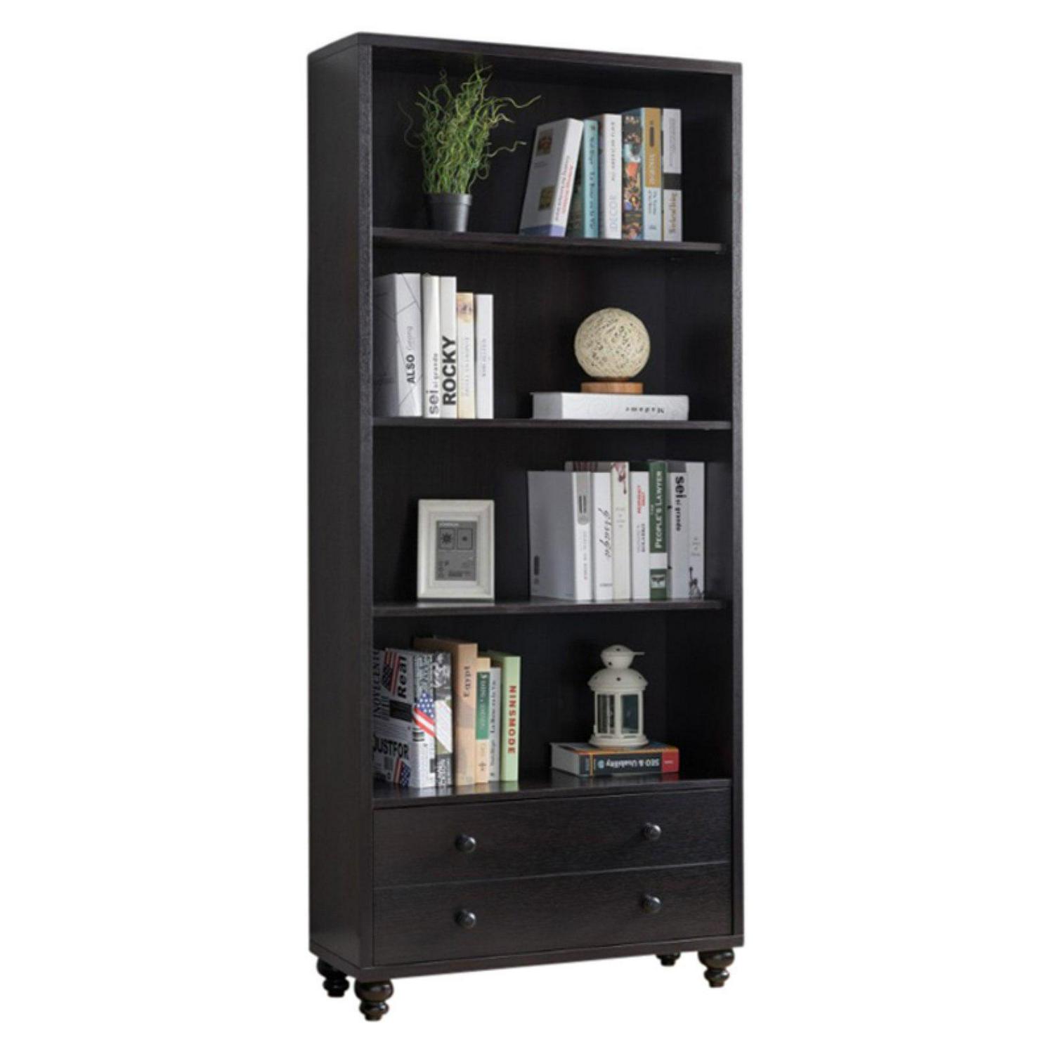 This Display Cabinet is the perfect solution to meet all your storage needs. With two bottom drawers you can keep your house clean and keep that mess out of sight. Four open shelves are the perfect option to store your books, display picture frames and collectibles. Both functional and attractive with its sleek contemporary styling, this display cabinet is sure to enhance the look of any room in your home. Perfect for your living room, office, bedroom and kid s room, this cabinet is made of high quality MDF with beautiful red cocoa brown finish.