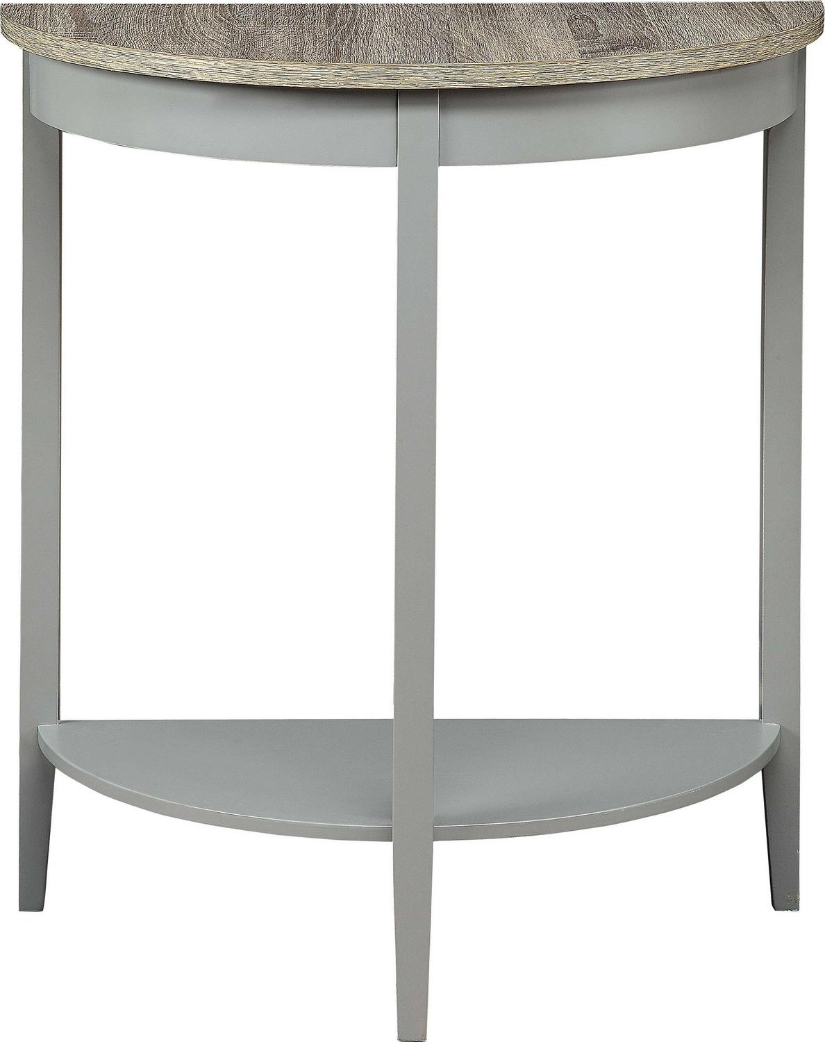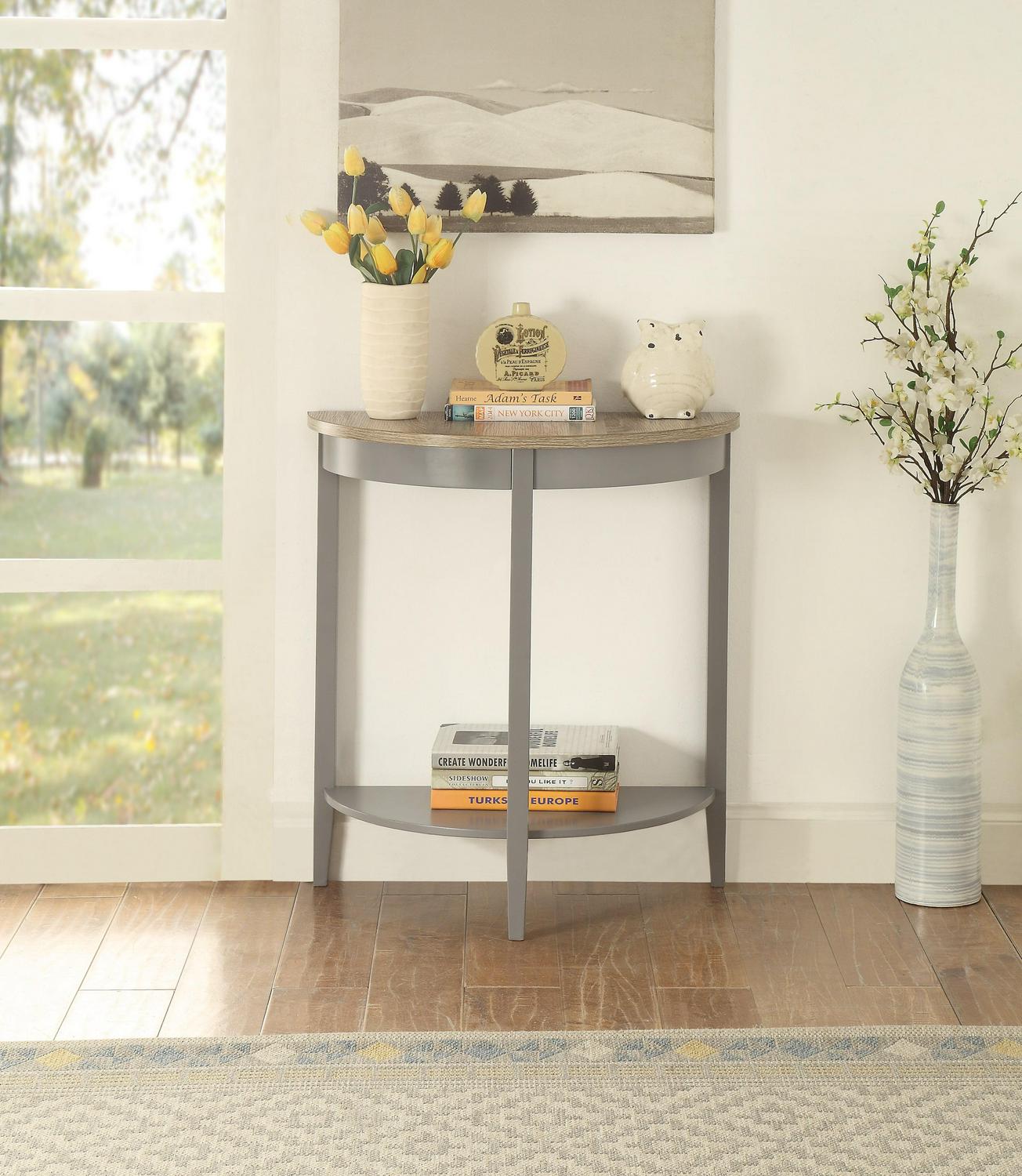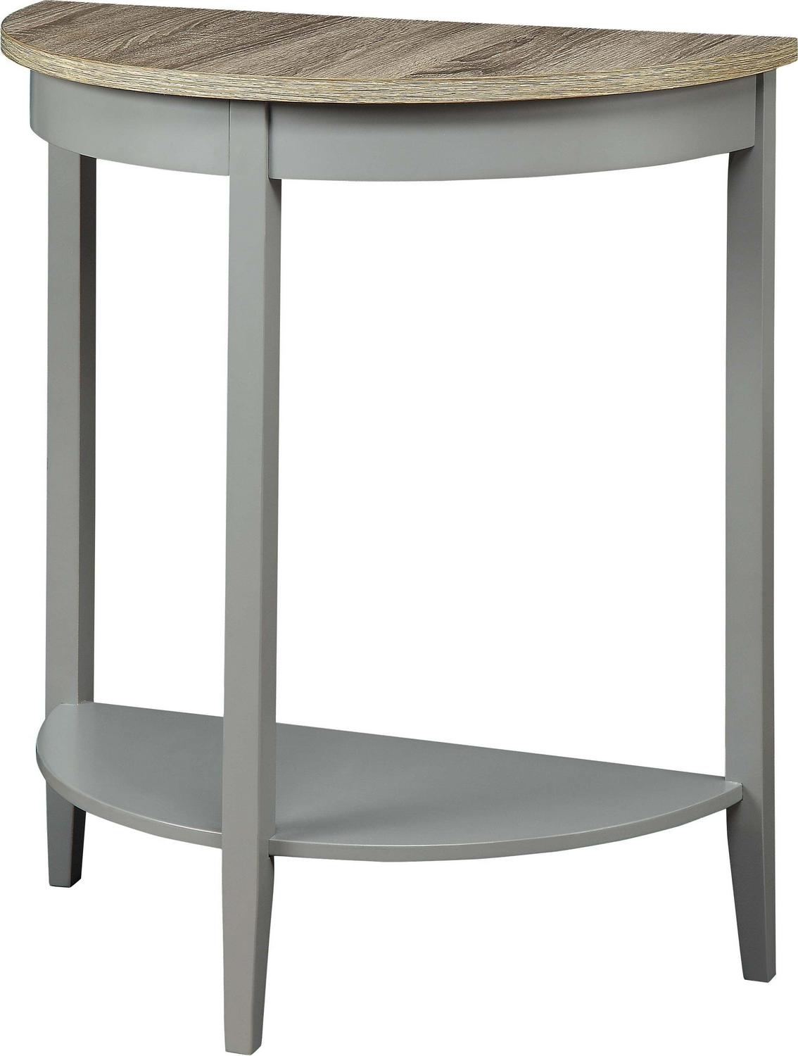 Wooden Half Moon Shaped Console Table with One Open Bottom Shelf, Oak Brown and Gray- Saltoro Sherpi