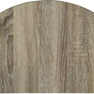 - Features a gray oak finish