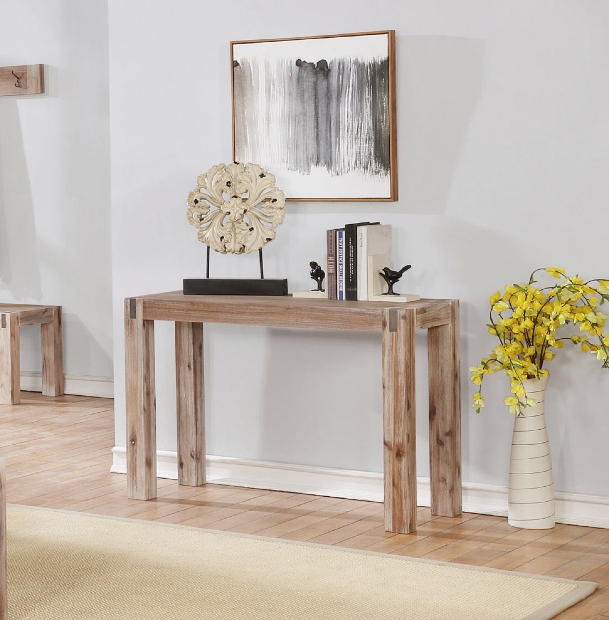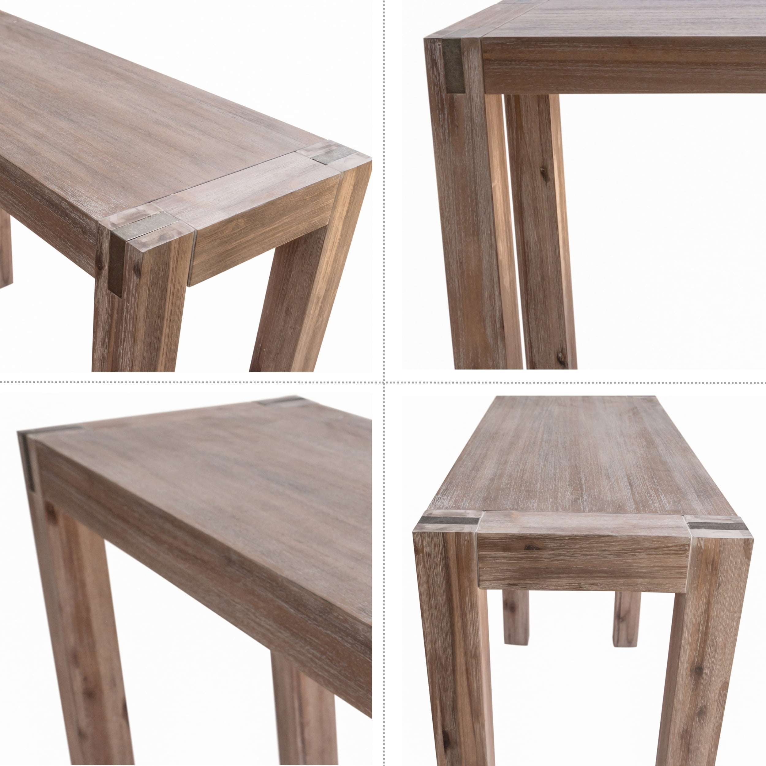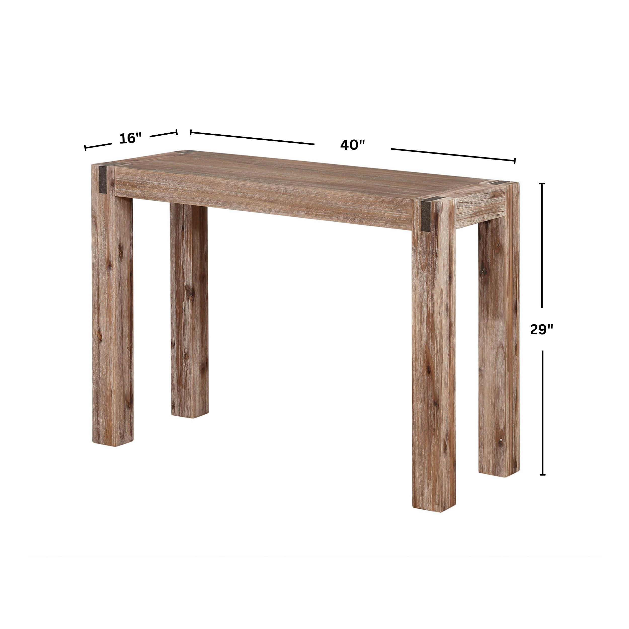 [FURNITURE CONSOLE TABLE] Alaterre Furniture Woodstock Console Table offers extra seating and style; solid Acacia wood legs with a bronze-finish metal inset on corners add rustic elegance to any modern farmhouse decor [TABLE CONSOLE] Woodstock Console Table is constructed from timeless appeal; clean lines with a brushed Driftwood finish melds with many different style accents, coffee and media tables [WOOD CONSOLE TABLE] Crafted with solid Acacia wood legs fit for any space, this Woodstock Console Table is perfect for entryway statement with its timeless appeal and modern farmhouse style [MODERN FARMHOUSE DESIGN] Elevate your home with the Woodstock Console Table; brushed Driftwood finish and metal inset blend rustic charm with modern elegance [ENTRYWAY TABLE] Get more use out of this timeless table perfect for console table clearance sale; the Alaterre Furniture Woodstock Console Table exudes rustic elegance while providing maximum efficiency