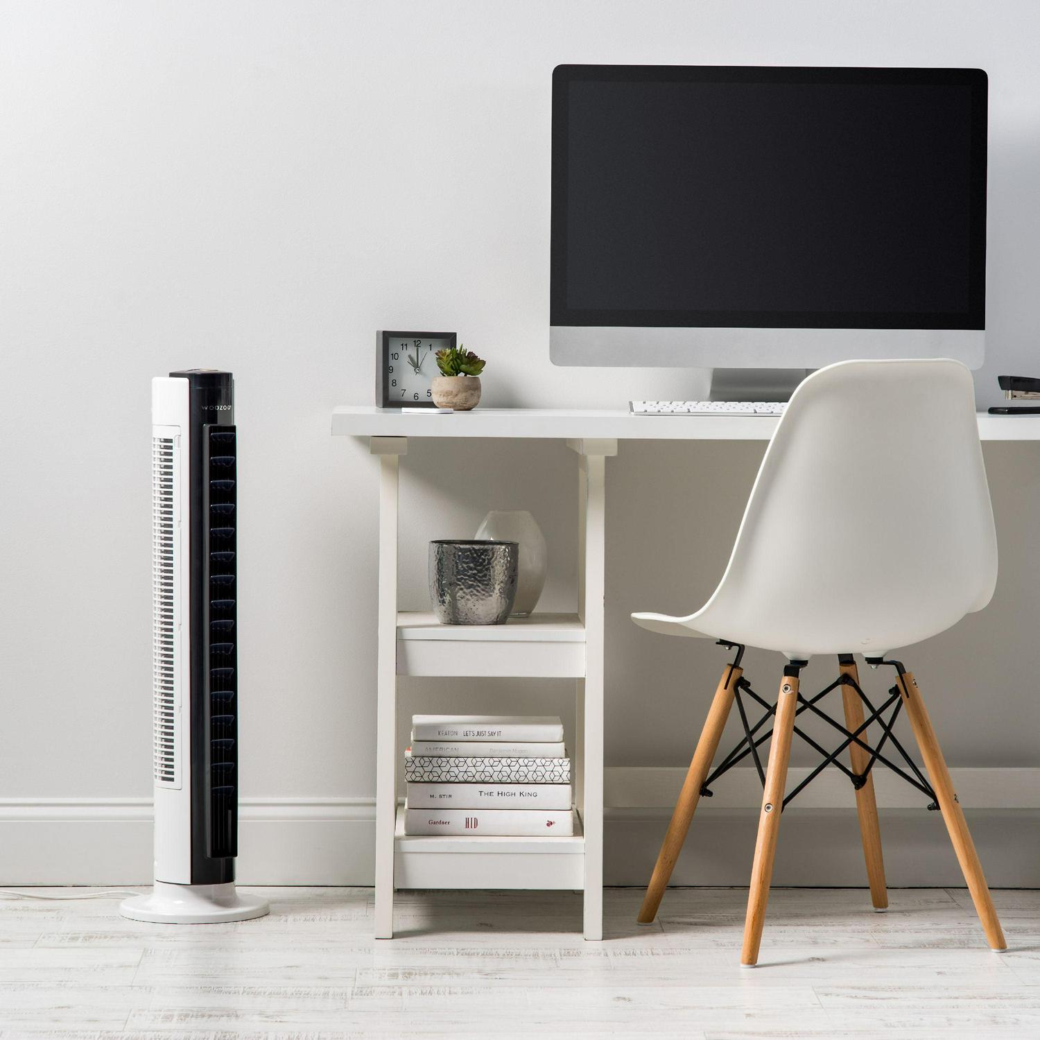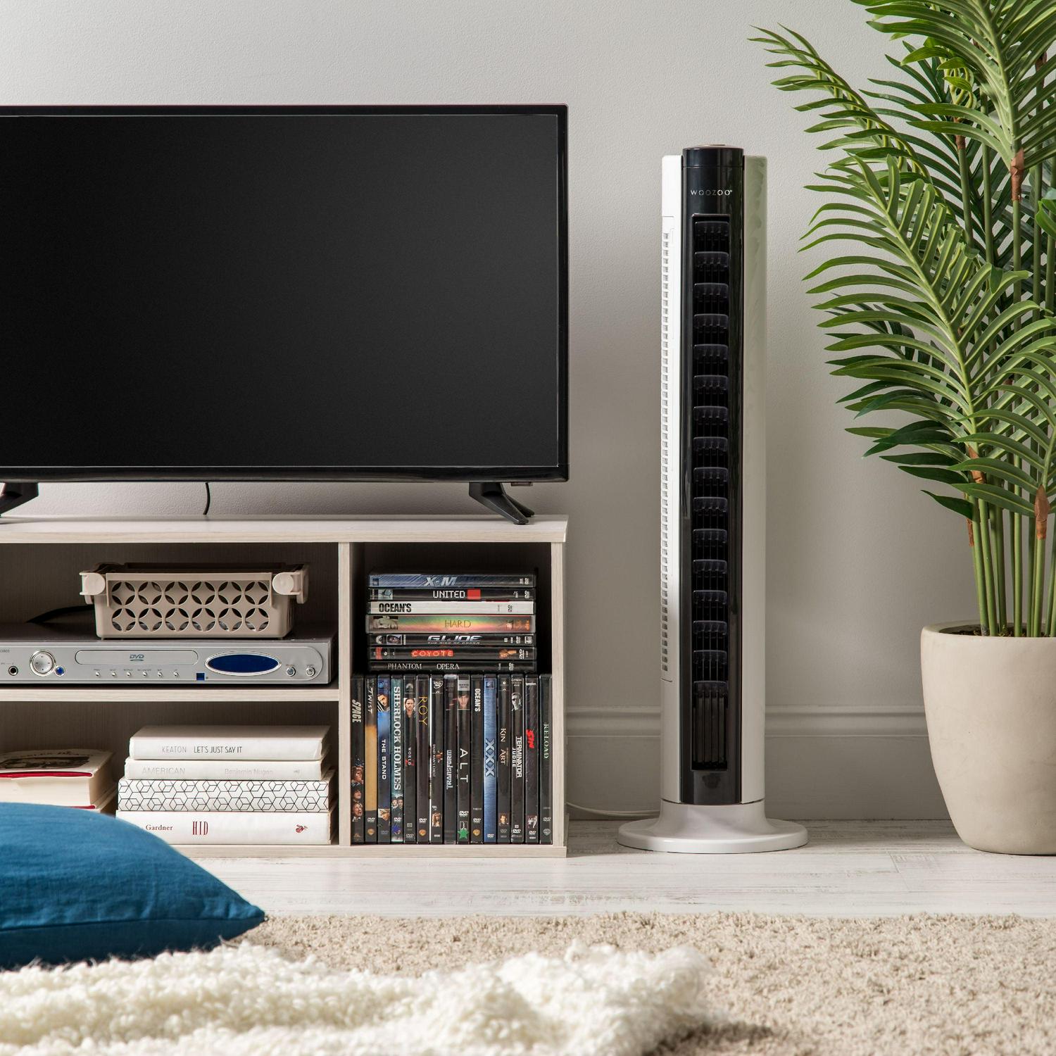 Woozoo 32 Tall Remote Control Oscillating Tower Fan, White/Black