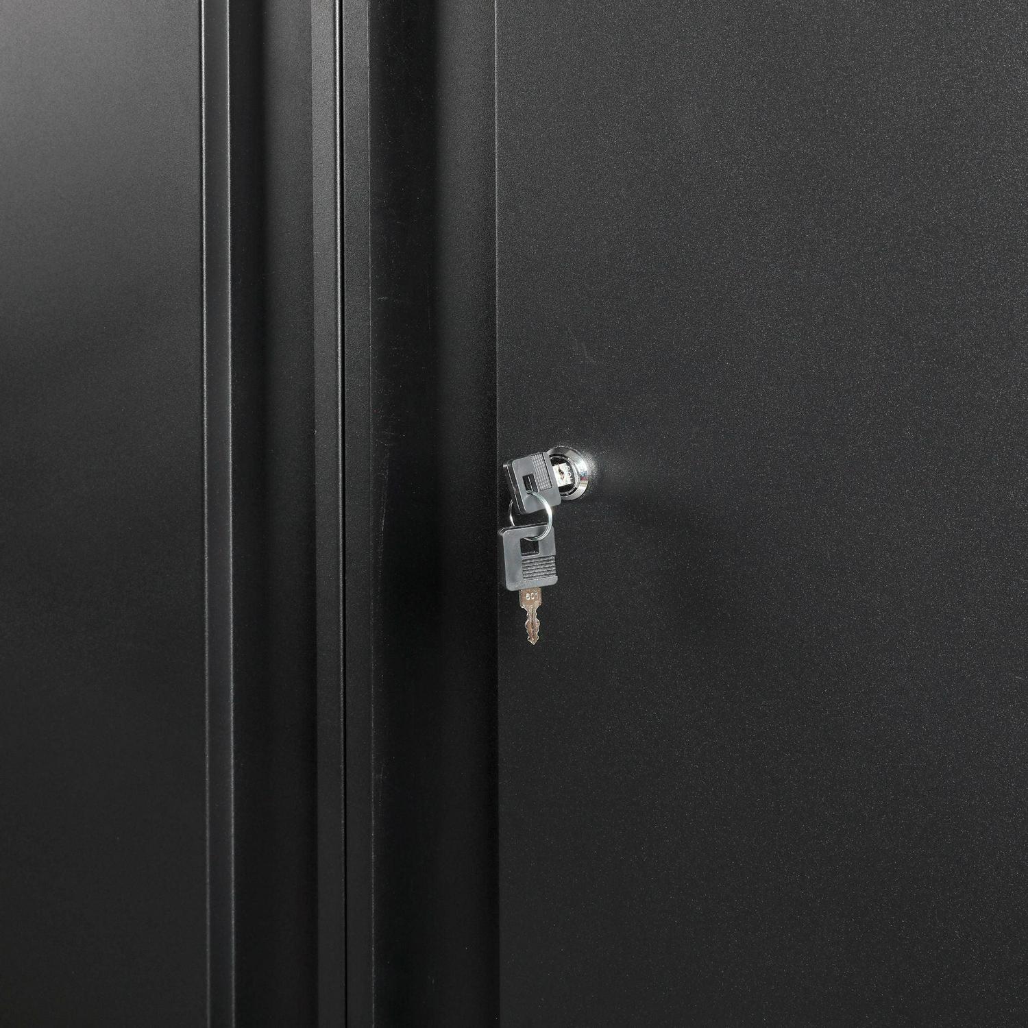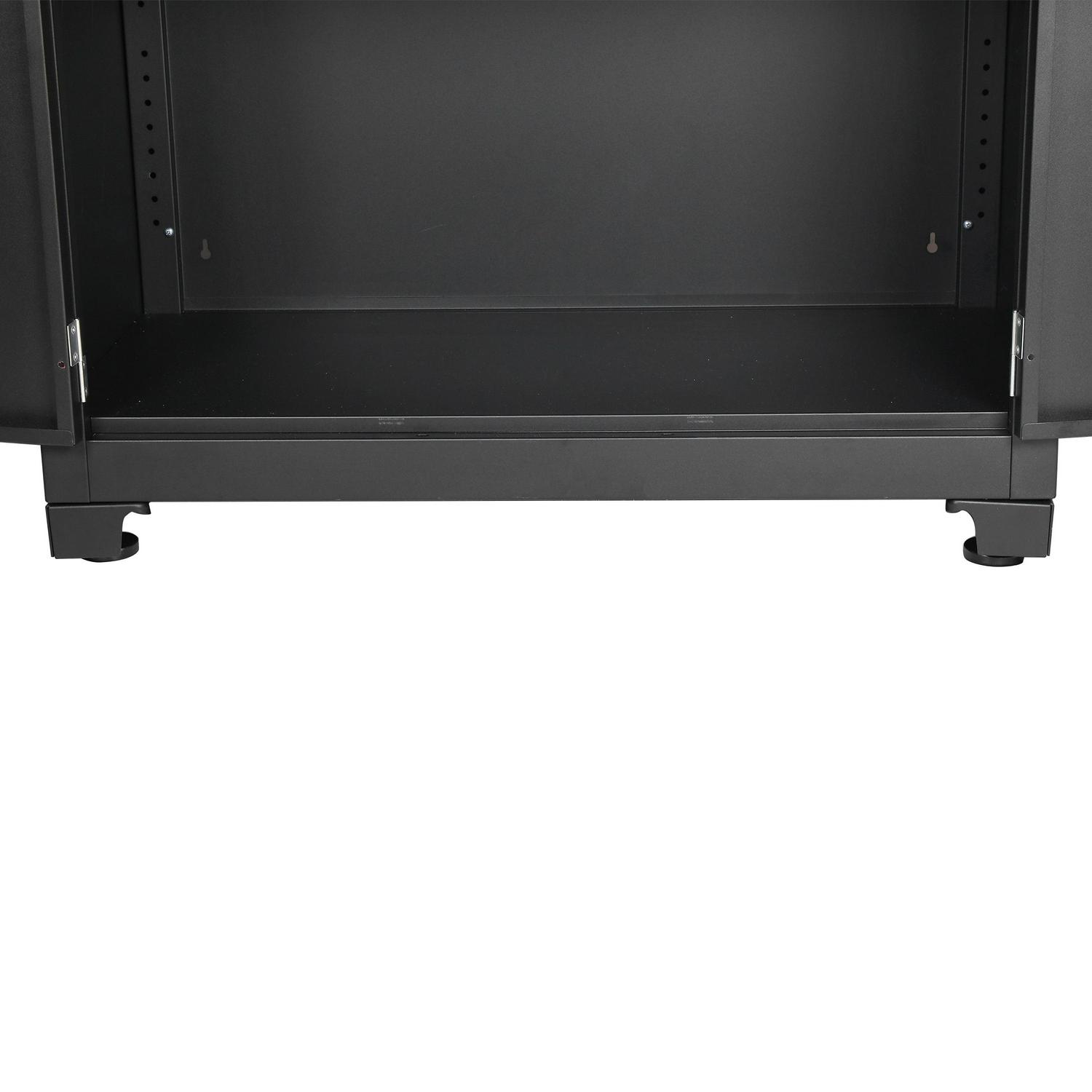 - Features: Locking Doors, Adjustable Shelves, Adjustable Feet, Powder Coat Finish