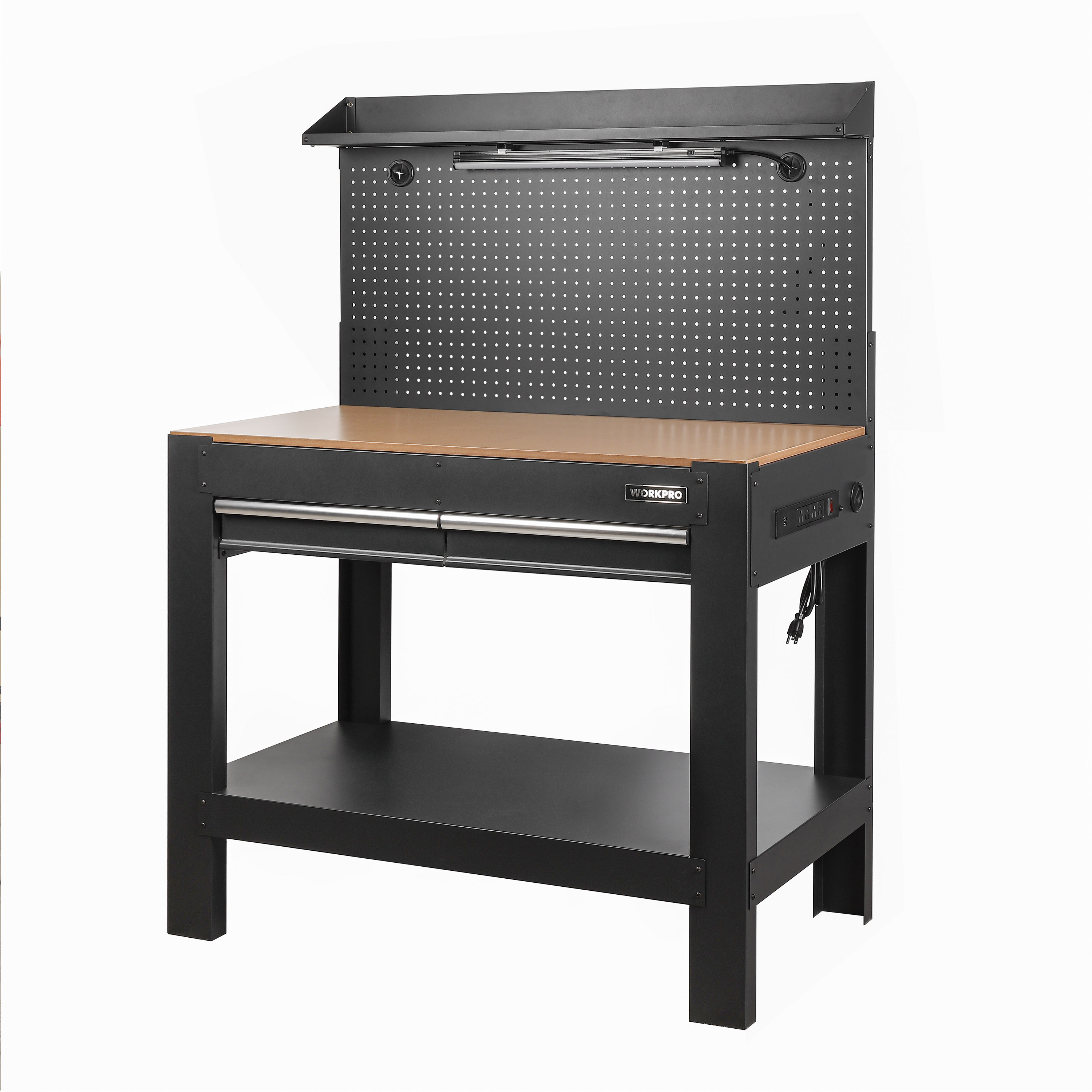 WORKPRO 45 in Multipurpose Workbench with LED light & power strip Steel Frame Pegboard storage Drawers for added storage Integrated LED Light Built-in Power Strip