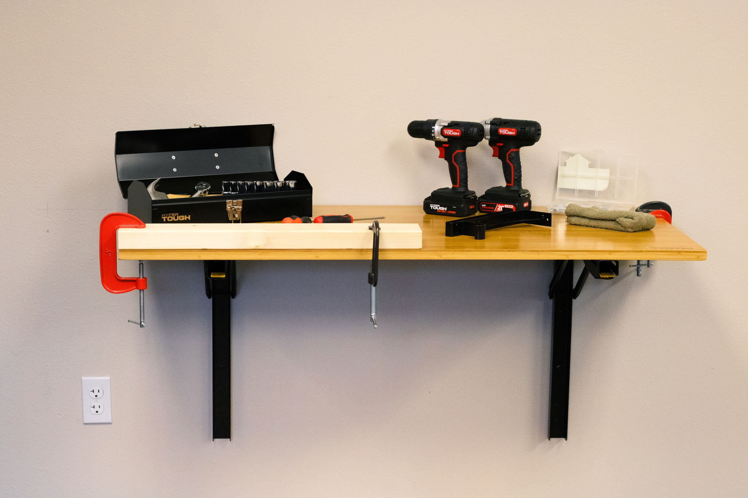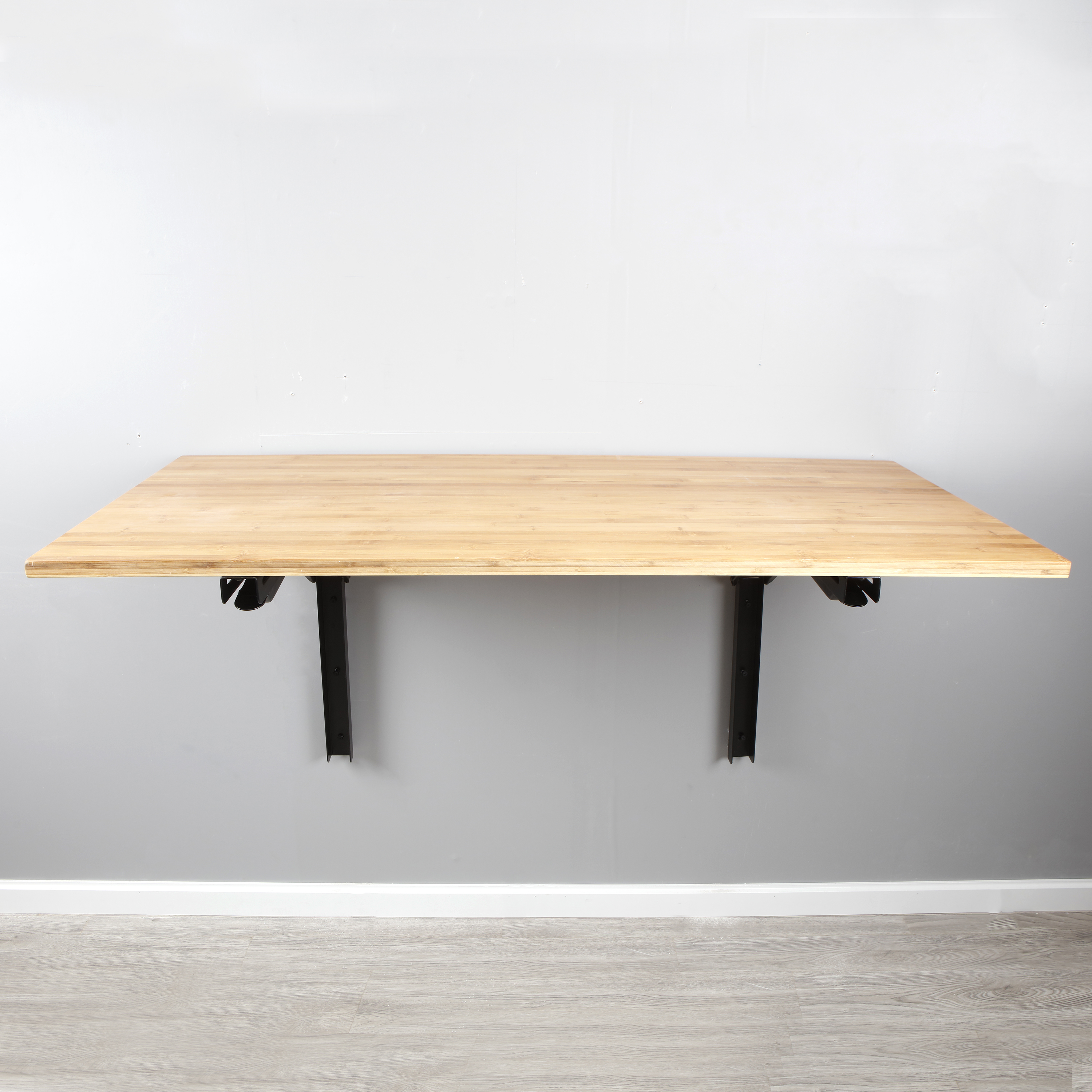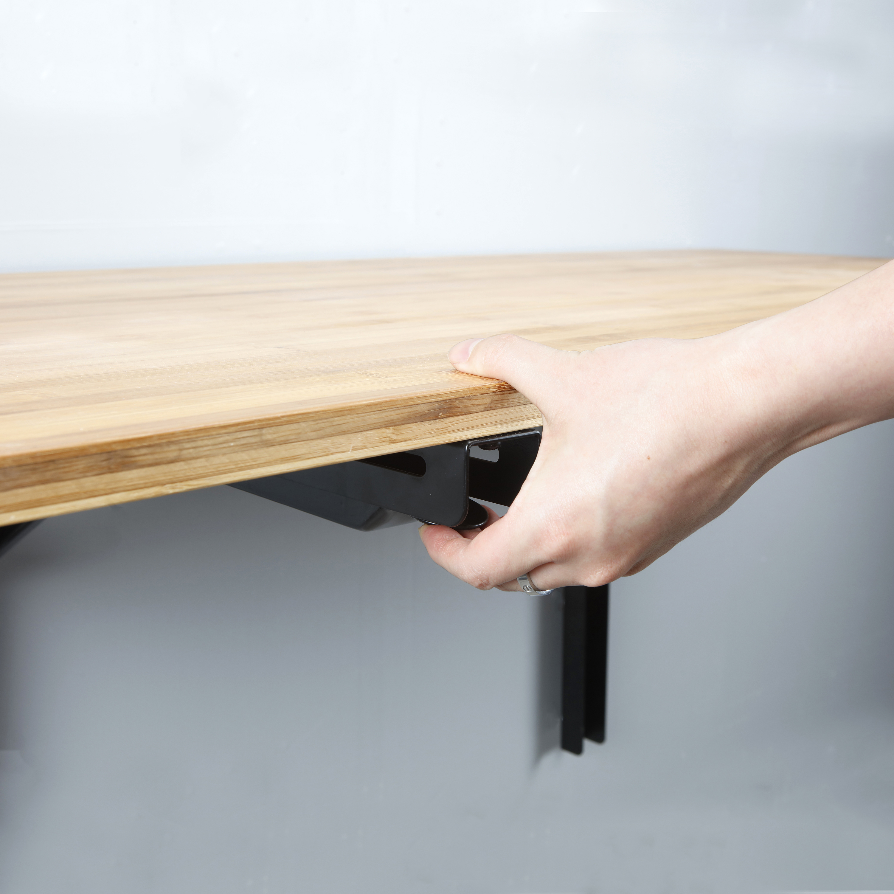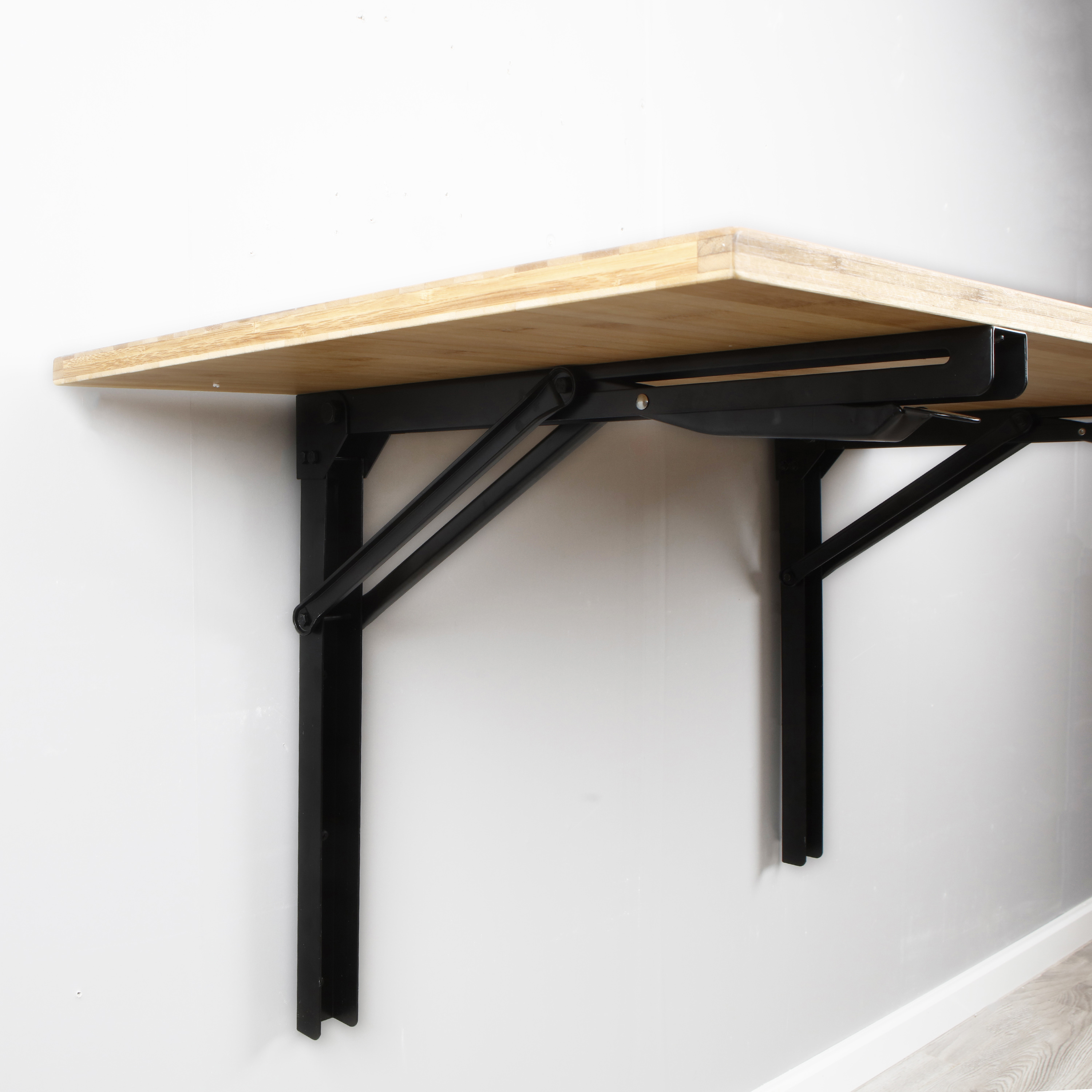 The ideal work surface solution for small spaces. It easily swings into the raised position, to create a functional and durable workstation. The heavy-duty black steel brackets lock into place for 500 lbs. weight capacity (when properly mounted into wall studs). The pair of steel brackets are powder coated for long-lasting durability. When not being used, fold the workbench away by simply releasing the brackets with fingertip pressure and lowering the top against the wall to regain your space. Get the workspace you need with the WORKPRO 48 Inch Bamboo Wall Mounted Foldable Workbench.