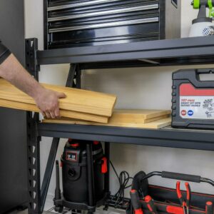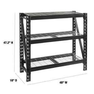The WORKPRO 48-inch heavy-duty shelf is the perfect organization system to add to your home, workshop, garage, and more! Constructed of durable steel material with a powder coated finish to resist rust and tarnishing. This freestanding unit has 3 steel shelves with 3 steel wire shelf decks that have a 1500 lbs. weight capacity per shelf that adjust in 3-inch increments. This steel rack is great for storing and organizing your heaviest items neatly to best optimize your space. Get your Workpro 3-Shelf Freestanding Heavy Duty Steel Rack Organizer today! For adults/ young adults.