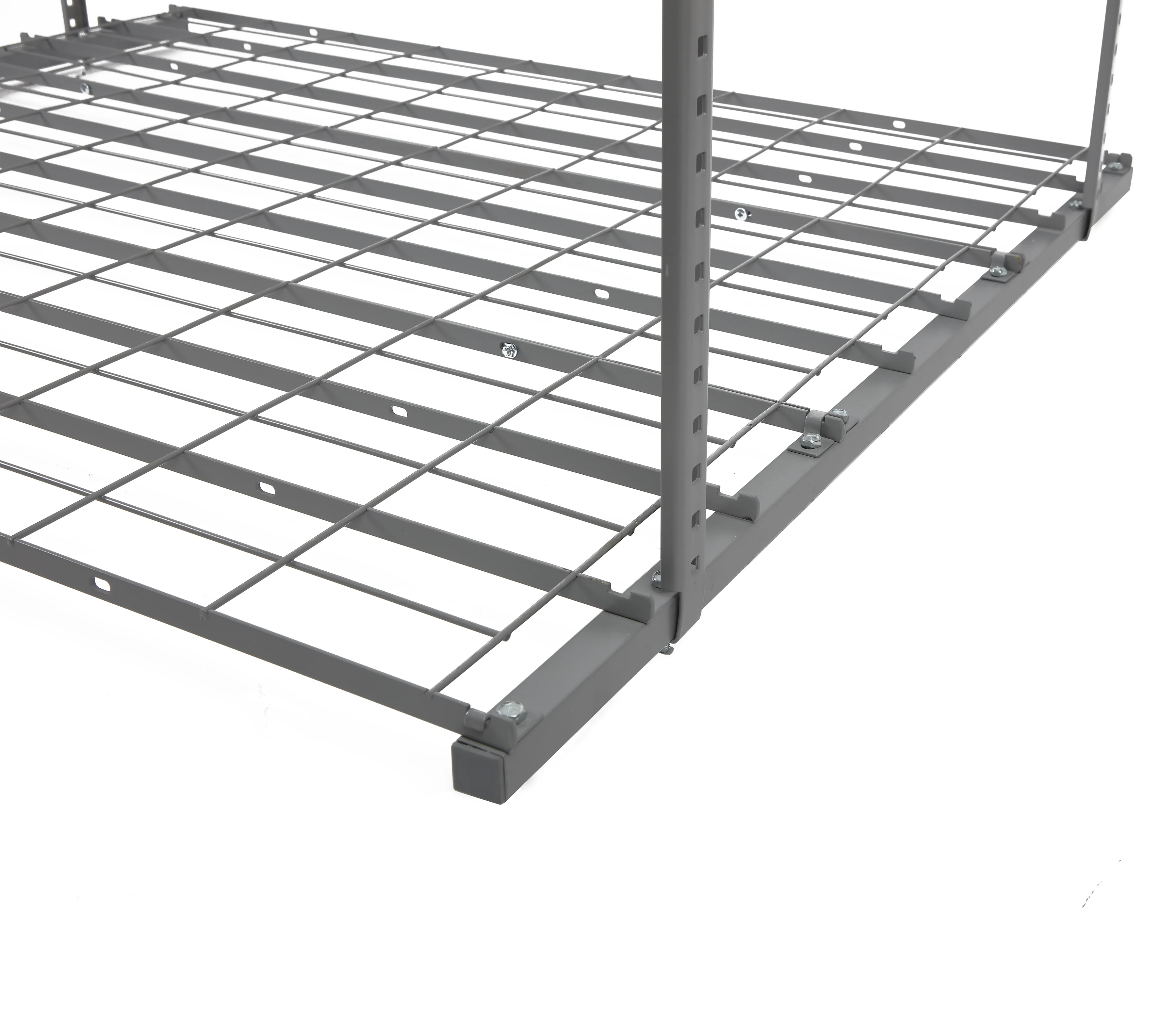 The WORKPRO Overhead Garage Ceiling Storage Rack, 42″W x 48″L x 28″H, is the perfect organizer for your garage, workshop or basement. This overhead rack helps you store those seasonal and unused items that take up valuable floor space. Manufactured with industrial grade steel, this heavy-duty rack holds up to 250 lbs. Its wire deck ensures air circulation to help prevent dust, mold, and mildew build up. The WORKPRO rack also features vertical side posts that allow you to adjust the ceiling-mounted storage unit from 16-inches to 28-inches. Customize this rack to your perfect height to fit your space and storage needs. All necessary hardware and instructions for assembly are included. Optimize your garage storage capacity with the flexible WORKPRO 42-Inch by 48-Inch Steel Ceiling Storage Rack.