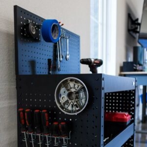 - Features: Swivel Casters, Removable Pegboard, Adjustable Middle Shelf, Pegboard Storage