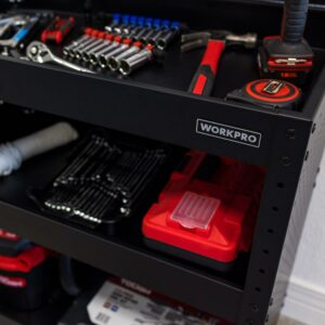 WORKPRO Rolling Service Utility Cart with Steel Pegboard Backer and Sides