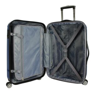 This World Traveler three piece luggage set is made of impact-resistant polycarbonate and features a 3-digit TSA combination lock, eight(8) spinner wheels, a retractable telescopic handle, top and side grip handles, and a fully lined interior with a flap divider, accessory pockets, and compression straps. It is lightweight and expands two inches for more packing capacity. – Polycarbonate shell, Built-in three-digit TSA lock, spinner wheels, push-button telescopic handle, padded top and side grip handles – Fully lined interior features a flap divider, accessory pockets, and tide down webbing straps – 20″ Carry-On Dimensions: 20″ H x 13″ L x 9″ W – 6.5 lb – 24″ Upright Dimensions: 24″ H x 15.5″ L x 10″ W – 7.6 lb – 28″ Upright Dimensions: 28″ H x 18″ L x 12″ W – 8.8 lb
