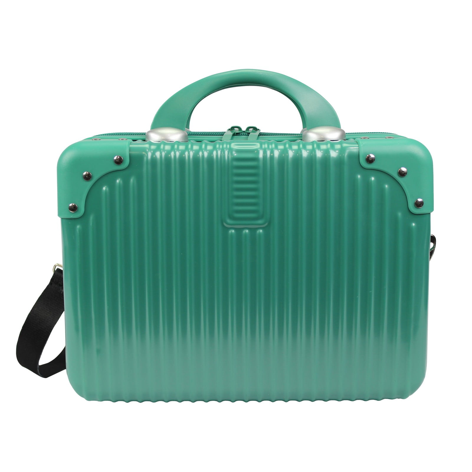 Durable polycarbonate shell construction with a two-inch expansion feature, Telescopic handle system, Easy glide spinner wheels, 3-digit Combination lock, and Top and side grip handles The fully lined interior features a zipper divider, shoe pockets, one mesh accessory pocket, and compression straps The cosmetic case features a rear strap that slides over the luggage handle, a zipper divider, accessory pockets, top carry handles, and a shoulder strap Carry-On Luggage Dimensions: 20″ H x 13″ L x 9″ W – 6.5 lb. (22″ H including wheels) Beauty case dimensions: 13″ L x 6.5″ W x 9.5″ H – 2.4 lb. (12″ H including handles)