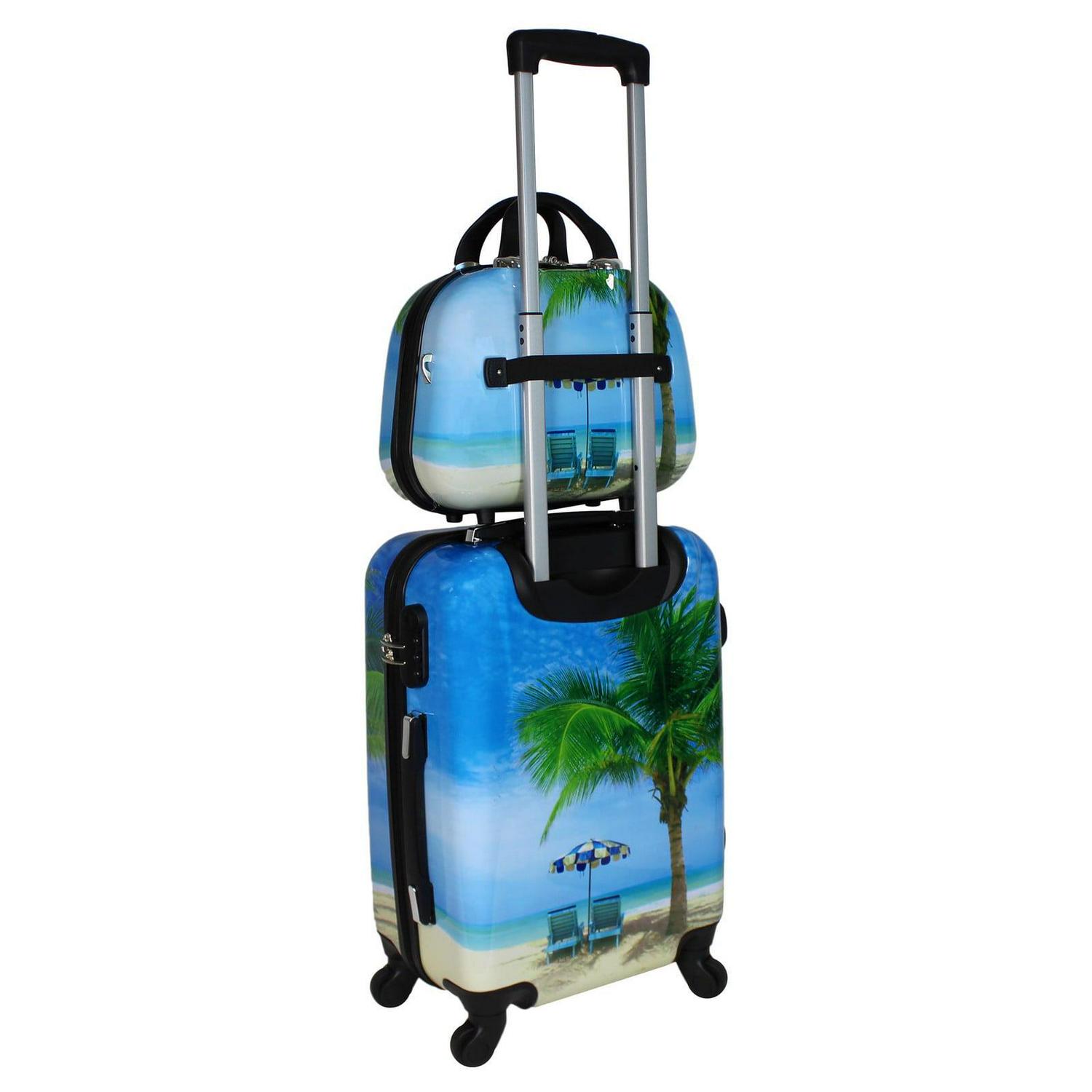 World Traveler Palm Tree Hardside 2-Piece Carry-on Spinner Luggage Set