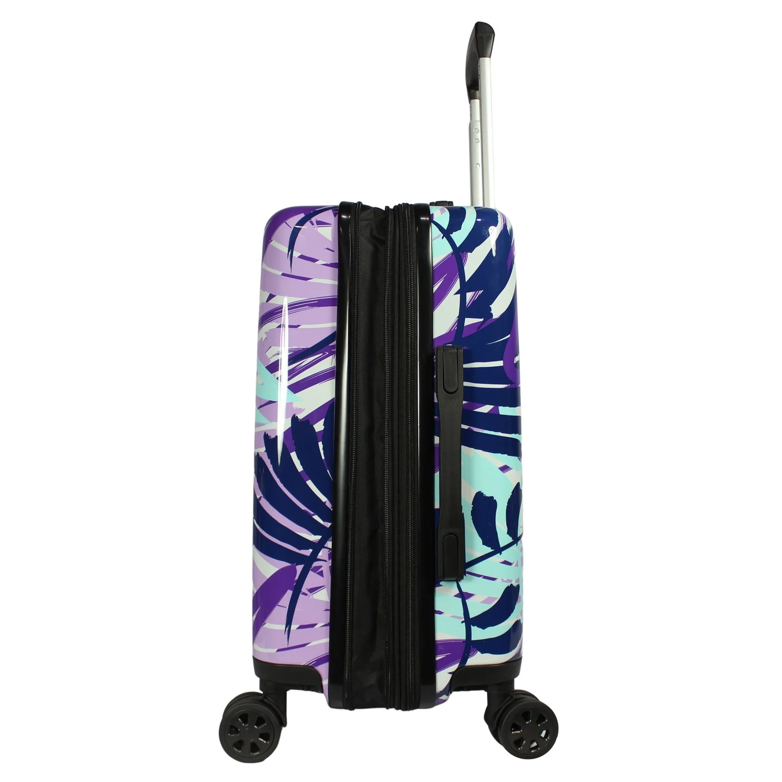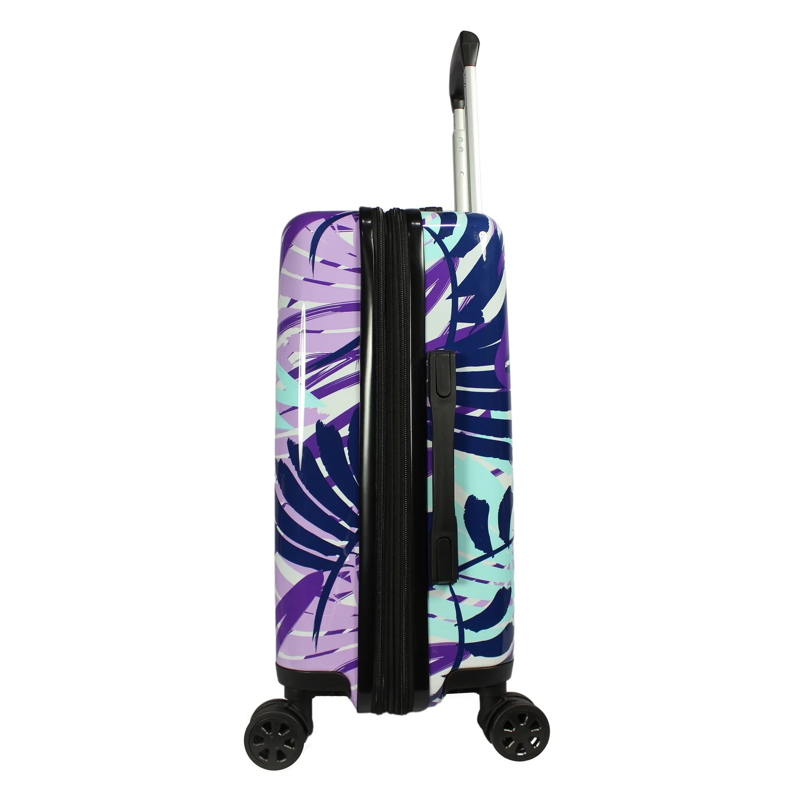 Super-stylish and ready for your next adventure, this printed 20″ lightweight hardside spinner carry-on and matching cosmetic case is the perfect travel companion. The fully lined interior features a zipper divider and compression straps. The impact-resistant Polycarbonate shell sits confidently on eight(8) spinner wheels that have been matched with a retractable telescopic handle to offer a maximum travel experience.