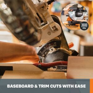 – [SPECS] Bevel adjustment from 0-45°, 3600 rpm motor, blade size: 7-1/4 x 5/8 arbor, weighs only 21 lbs