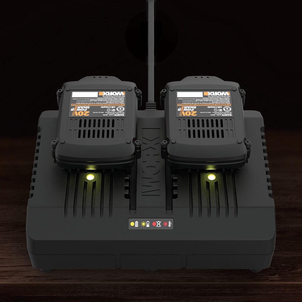 Worx WA3884 20V Li-ion Dual Port Charger (4A), 1 hr. (2 batteries with 2.0Ah)