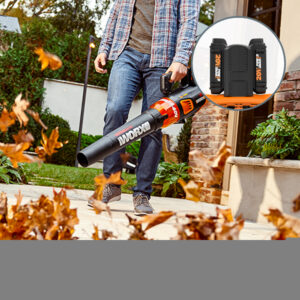 Twice the battery power of standard cordless blowers with a 3-speed + Turbo shifter. The 430 cfm 40V TURBINE Blower is a high-performance tool that ll make clearing your property of leaves and debris easier, and more fun, than ever before. With two 20V batteries combining for 40V worth of increased runtime and performance, this is the leaf blower for larger, more challenging lawns. The brushless motor is more efficient and runs at higher speeds while drawing less battery than motors based on a brush design. That allows for the added functionality of extra gears. 1st blows out 270 cfm (Cubic Feet per Minute) @55 mph for tight corners, 2nd is 320 cfm @65 mph, for when you get out on the open lawn, 3rd is 360 cfm @75 mph (now that s as much as some of the more powerful blowers on the market), and Turbo tops out at 430 cfm at 90 mph for the toughest tasks. Yet, at only 7.3 lbs with both batteries installed, you can still handle all that power with just one hand. The on-board battery gauge lets you know exactly how much juice you have left in the tank, so you ll know when you have to head back to swap out or recharge. This model comes with two 20V 2.5Ah Power Share batteries and a 2A dual-slot charger. Not only do they power this blower, but you can use them to operate any tool on the Worx Power Share platform. You ll save money in the long run because you can share batteries between your tools.