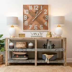 Woven Paths 36″ Square Stained Wood Wall Clock: