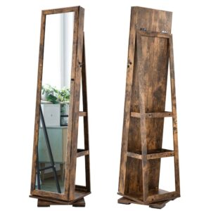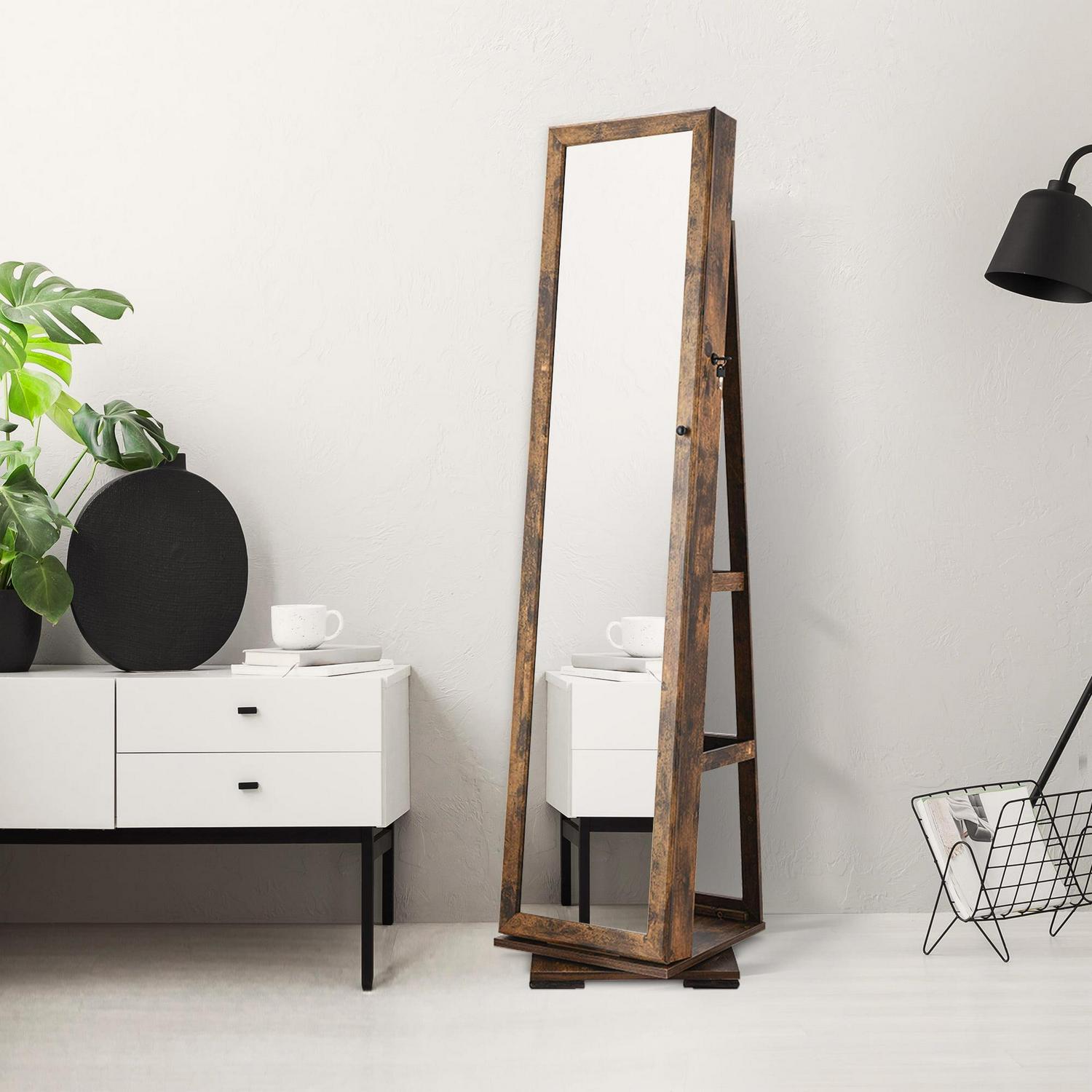 Woven Paths 360 Spinning Lockable Jewelry Armoire with Free-Standing Mirror, Brown