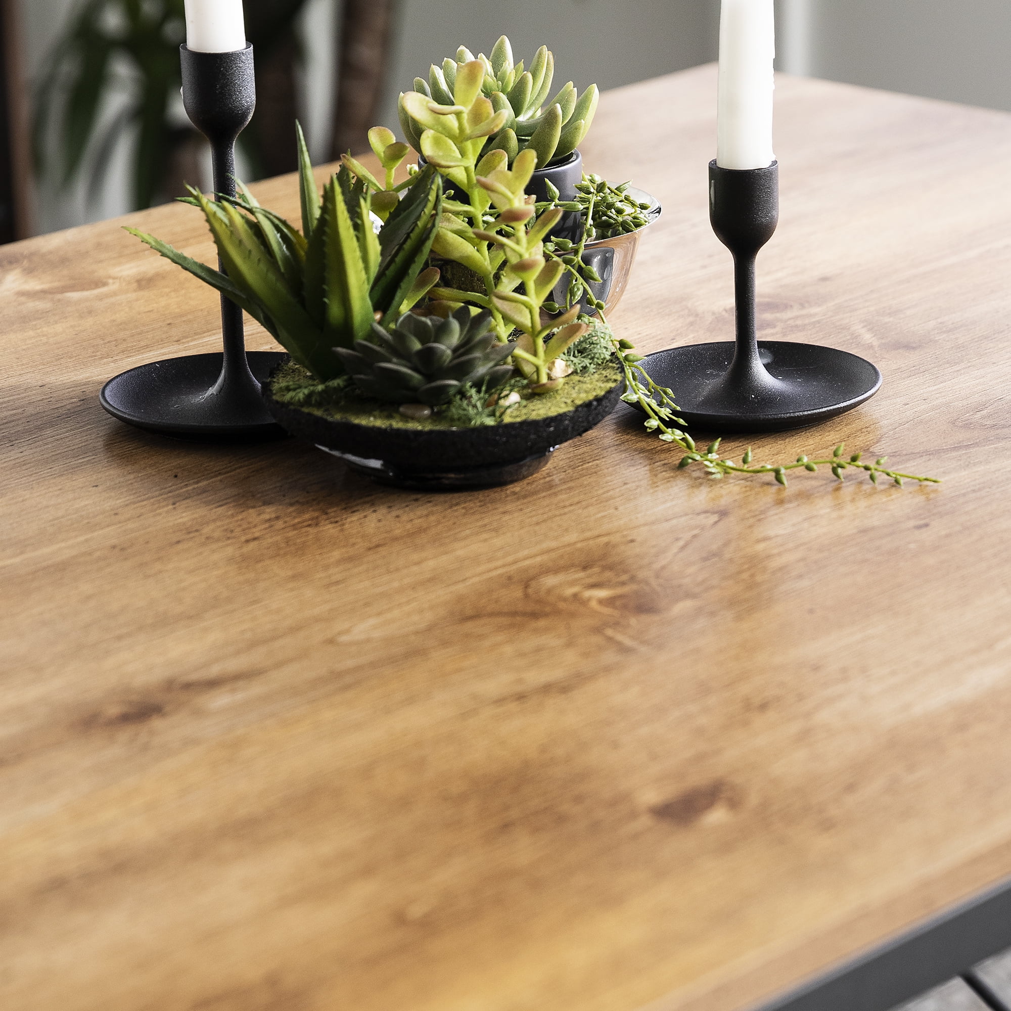 Woven Paths 48″ Angle Iron Rustic Wood Dining Table, Barnwood: Features an industrial style for a fashionable addition to your home Powder-coated metal legs and corner details complement the table’s industrial appeal Durable, long-lasting construction designed for everyday use Perfect for your kitchen or dining room Ships ready-to-assemble with step-by-step instructions Assembled dimensions: 30″ H x 48″ L x 32″ Product weight: 45 lbs Tabletop is made from high-grade MDF and premium 65-grain laminate with TruLife patterns Our durable laminates are pressure-applied to certified MDF for maximum consistency and value Note about wood composite or engineered wood: Often referred to as “MDF,” which stand for medium density fiberboard,” this type of wood composite is made of compressed wood fibers and has several benefits including affordability, consistency, and resistance to warping or rotting over time.