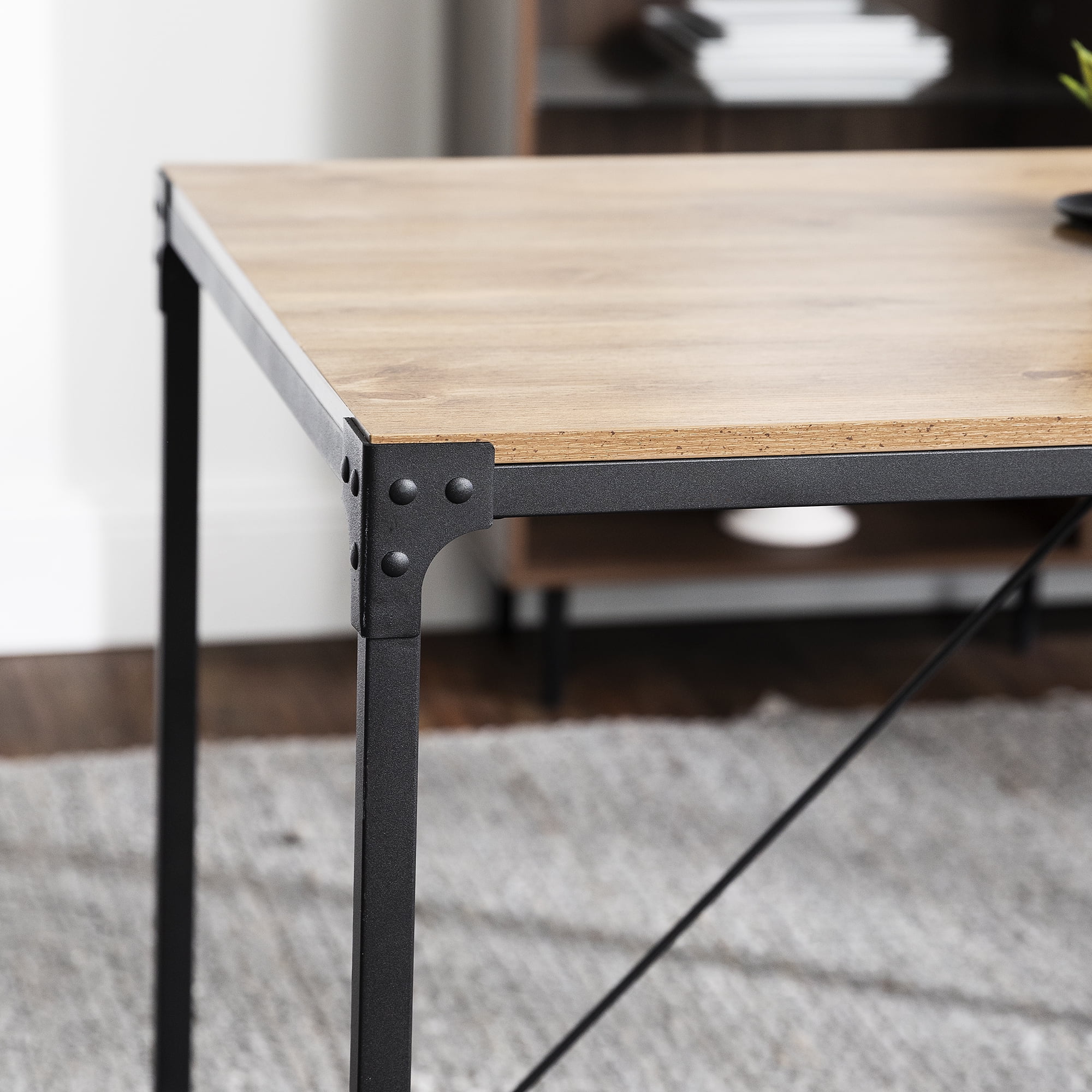 Woven Paths 48″ Angle Iron Rustic Wood Dining Table, Barnwood